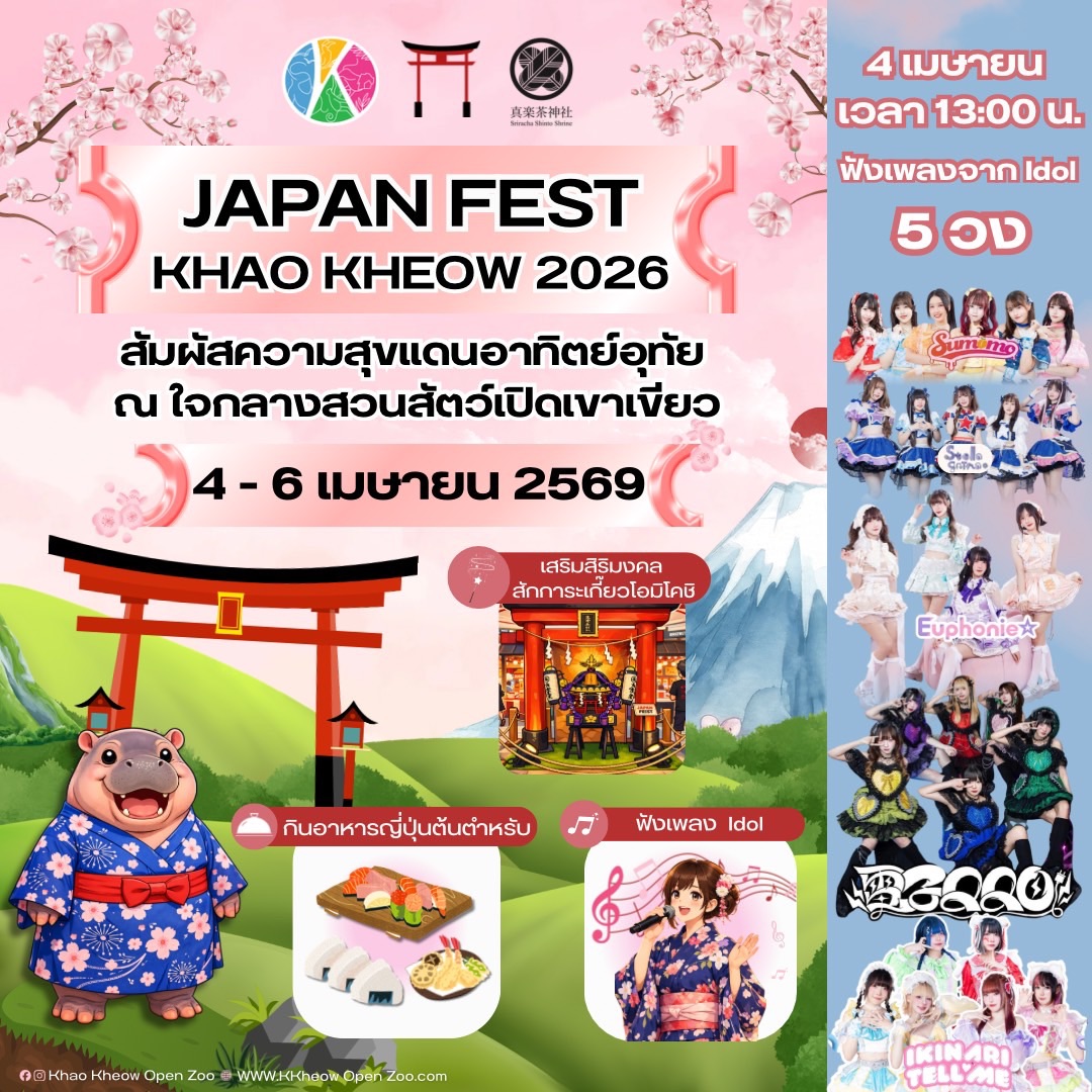 タイ東部チョンブリー県のカオキオ動物園で、日本文化をテーマにしたイベント「JAPAN FEST KHAO KHEOW 2026」が開催されます。日程は2026年4月4日から6日までの3日間です。