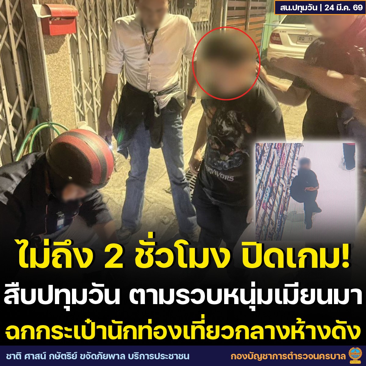 バンコク首都警察は2026年3月24日、バンコク中心部サイアム地区の商業施設内で発生した観光客の盗難事件について、発生から2時間以内に容疑者を逮捕したと発表しました。
