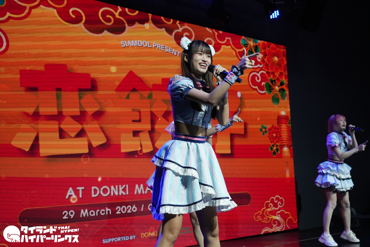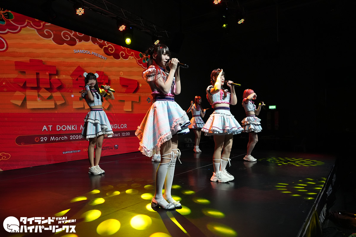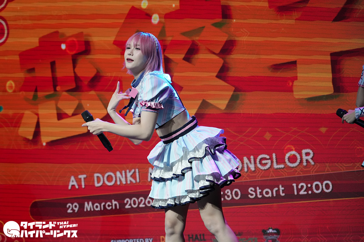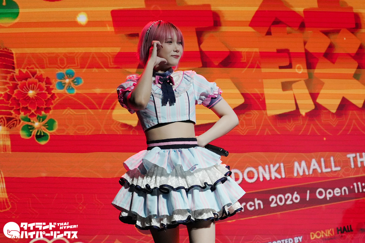 アイドル6組が出演した「恋餃子」リリースイベントが、2026年3月29日(日)にバンコクのドンキホール(ドンキモール・トンロー)で開催されました。4番手で登場したのはSumomo(スモモ)です。