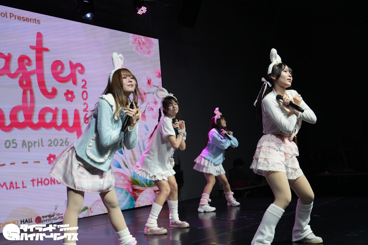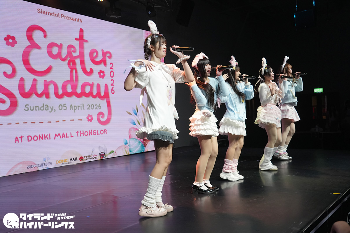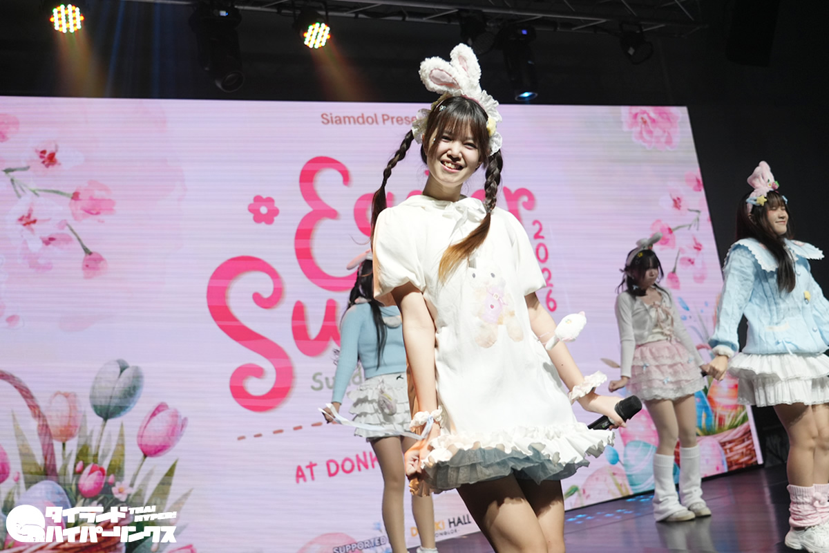 タイのアイドルグループ8組が出演したイースターを祝うライブイベント Siamdol presents 『Easter Sunday 2026』が、バンコクのドンキホール(ドンキモール・トンロー4階)で2026年4月5日(日)に開催されました。7番手で登場したのはStellagrima*(ステラグリマ)です。