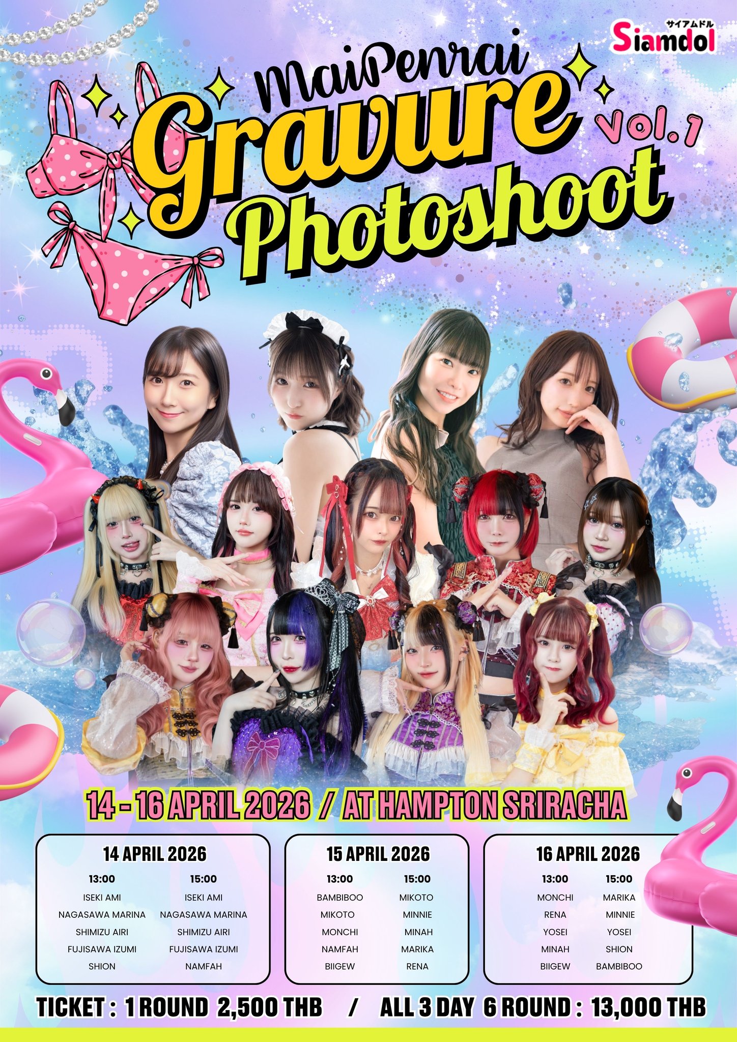 タイのアイドルプロダクションであるSiamdol(サイアムドル)は、グラビア撮影イベント『Maipenrai Gravure Photoshoot Vol.1』を開催すると発表しました。会場は、約7000人の日本人が暮らすことで知られるタイ東部チョンブリ県シラチャの「Hampton Sriracha」。2026年4月14日から16日までの3日間、各日13:00と15:00の2回実施されます。