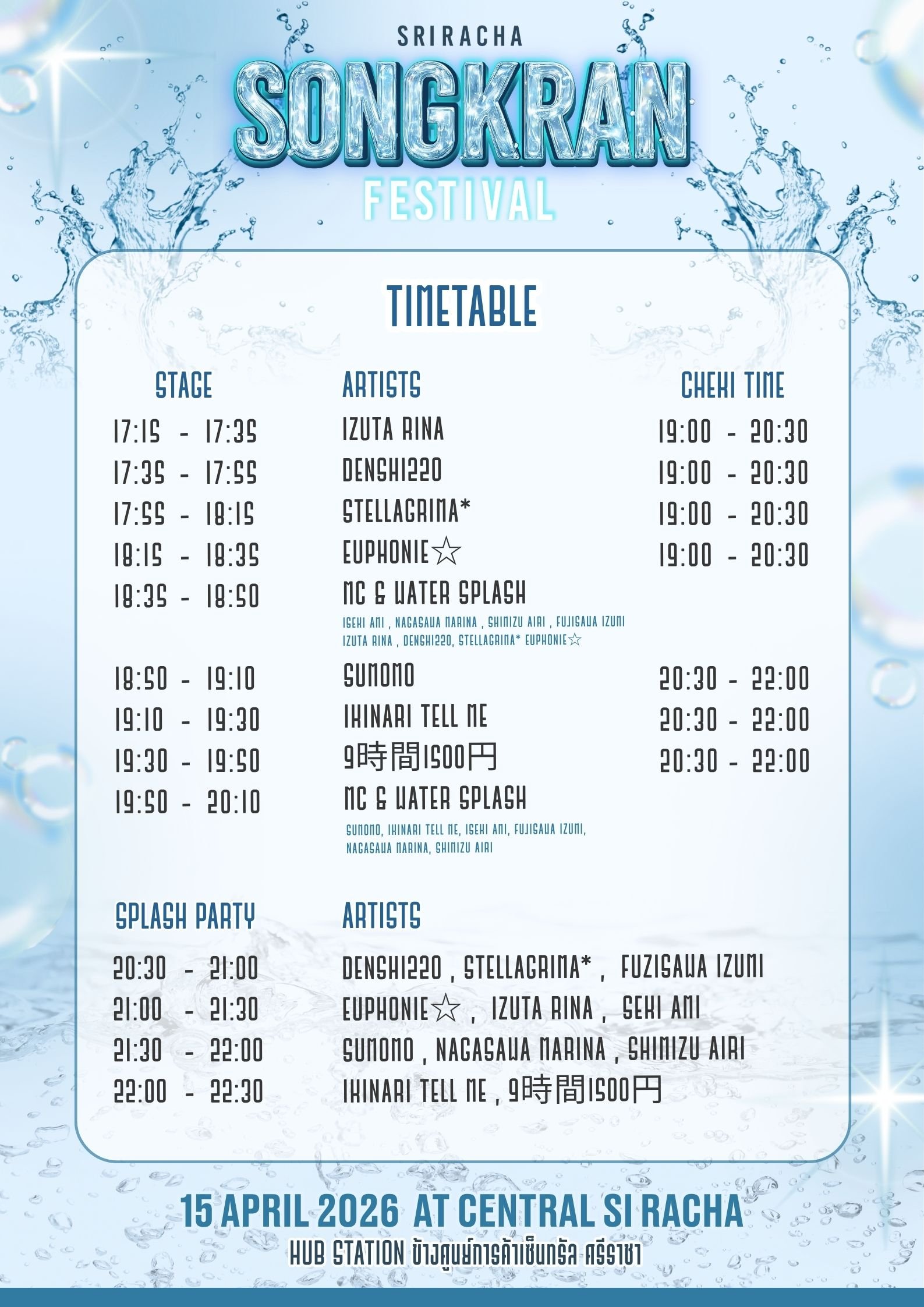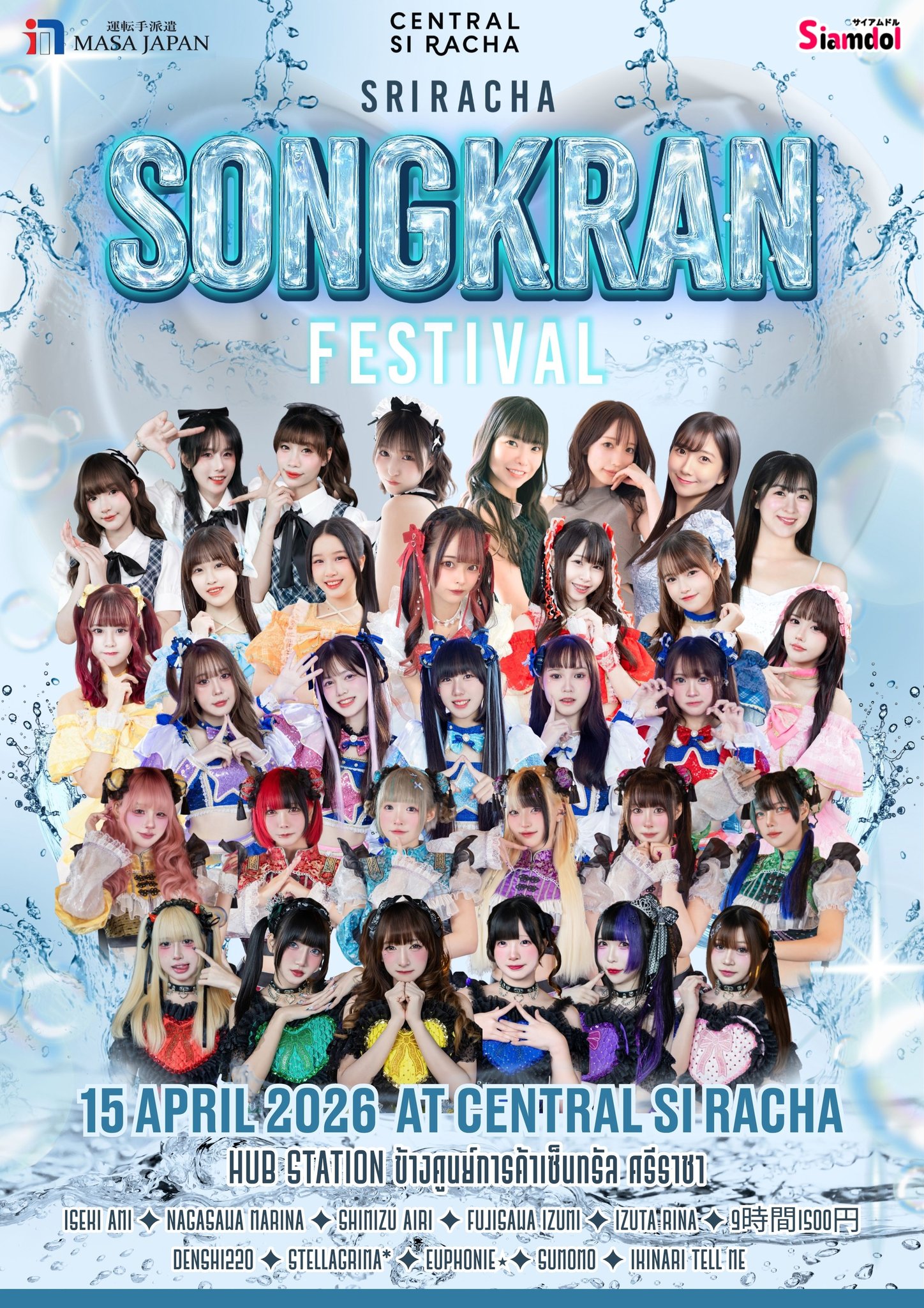 日タイのアイドルらが出演するライブイベント「シラチャ・ソンクラーン・フェスティバル」が、タイ東部チョンブリ県シラチャにある大型ショッピングモール「セントラル・シラチャ」で開催されます。ライブ鑑賞無料。その後のスプラッシュパーティーは1回800バーツ。