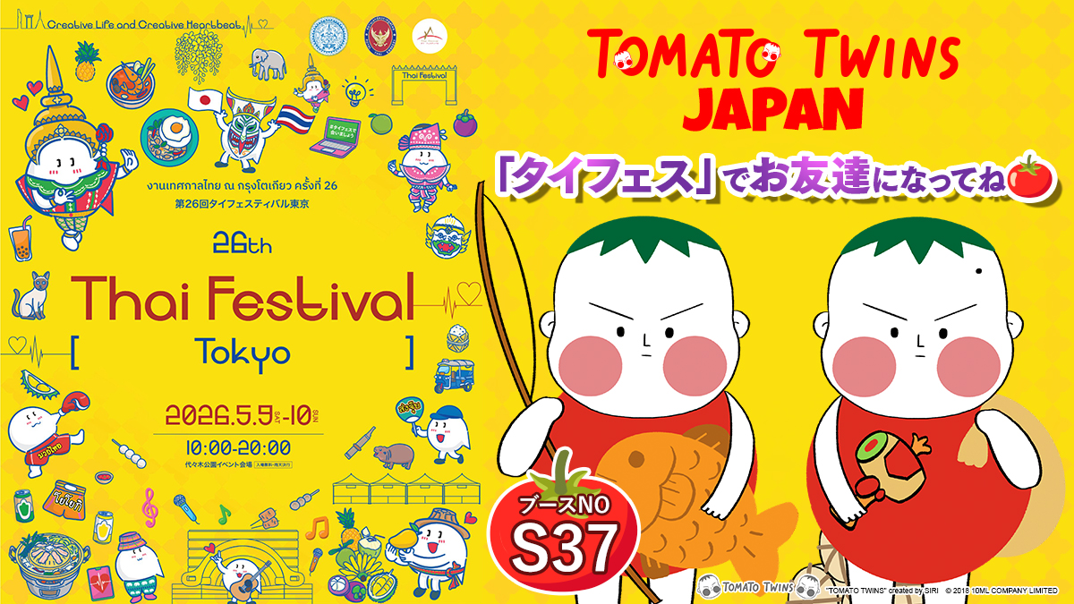 株式会社コンテンツシードは、タイのクリエイターSIRIが生み出した人気キャラクターTOMATO TWINSについて、日本での展開の一環として「第26回 タイフェスティバル東京」へ出展すると発表しました。2026年4月24日に同社が発表しています。