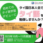 タイ国日本人会は、2023年10~11月の期間にてタイ語基礎クラス(日常会話編・社内コミュニケーショ[...]