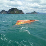 タイ南部クラビ県ムアン区カオトーンにあるホン島近くで2023年2月5日(日)、ロングテールボートが転[...]