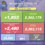 タイ保健省は2022年7月29日(金)、1日で確認された新型コロナウイルス陽性者が2,480人(海外[...]