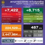 タイ保健省は2022年2月1日(火)朝、1日で確認された新型コロナウイルス陽性者が7,422人で、1[...]