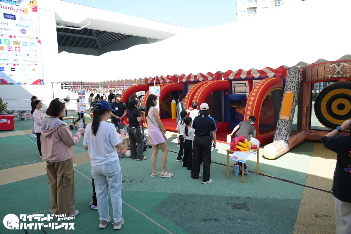 広い校内の敷地にはアトラクションやゲームコーナーが並び、子どもたちは思い思いに遊びを楽しんでいました。