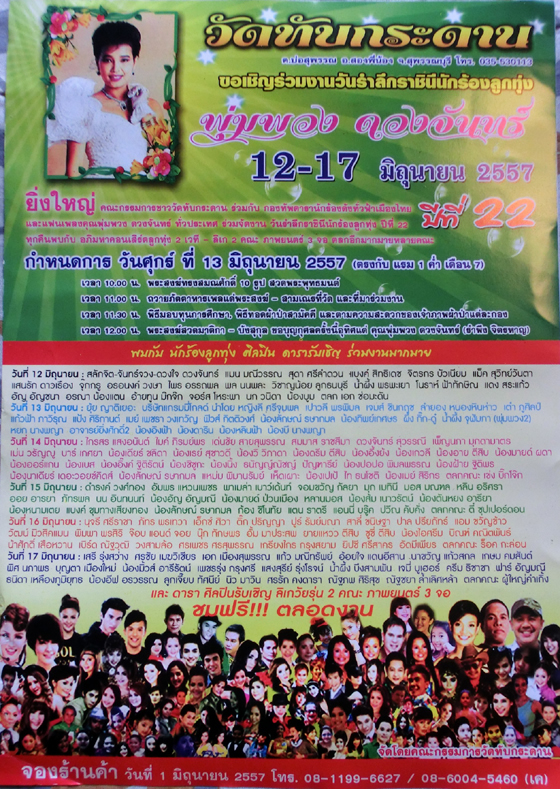 2014年で22回目となる命日も、彼女が祀られているスパンブリー県のワット・タップグラダーンで追悼コンサートが開催されました。