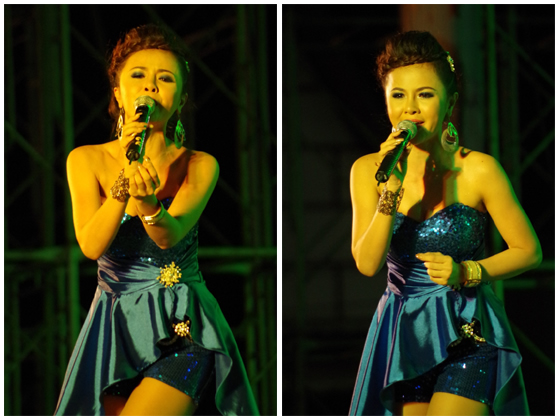 そして、20時を過ぎた頃からグラミー・ゴールドの歌手たちが登場する時間となりました。まず登場したのは、プムプアンと同郷(スパンブリー)で彼女の伝記映画に出演しプムプアンを演じたパオワリー・ポンピモン(パオ)でした。