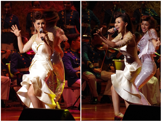 まずはパオに続いて、プムプアン・ドゥアンジャンのカヴァーメドレーを披露。今、最もノッている歌手であることをまざまざと見せ付けてくれる勢いのある歌と踊りが見事です。