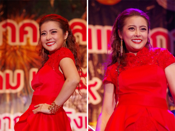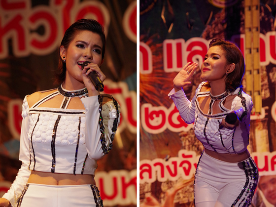 ステージはダンサブルにスタート。プムプアン・ドゥアンヂャンの名曲「コー・ハイ・ルアイ(ขอให้รวย)」やパイ・ポンサトンの大ヒット曲「コン・バーン・ディアオ・ガン(คนบ้านเดียวกัน)」などをメドレーで歌い、お客さんも盛り上がります。