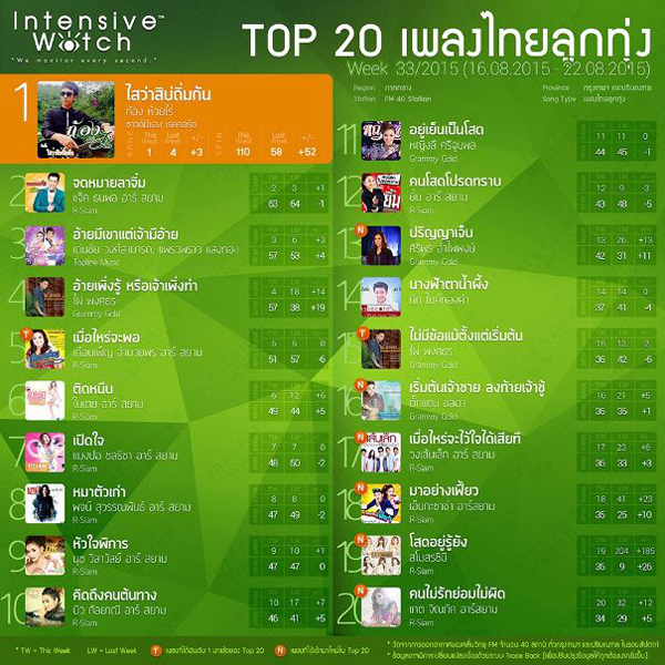 ◆Intensive Watch、8月16~22日のルークトゥン・ヒットチャート