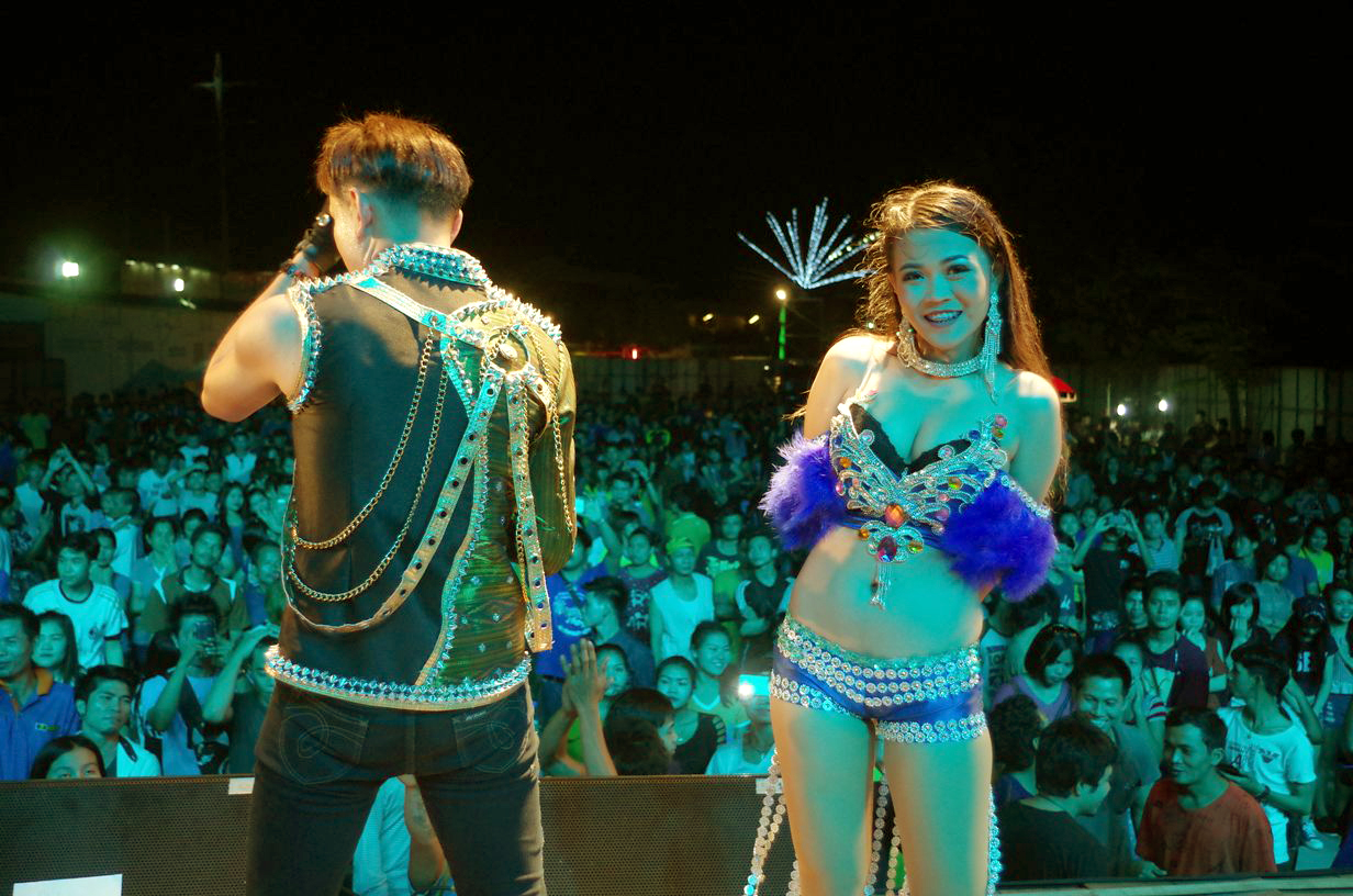 これはあるコンサートでラムヤイが高々と脚を上げている写真なんですが、このエロティックな仕草が人の関心を引いたのでしょうか、芸能関係のメディアがこの無名の歌手をこぞって取り上げる事態となってしまいました。