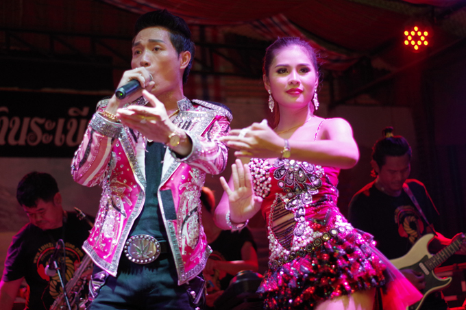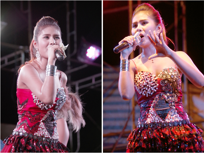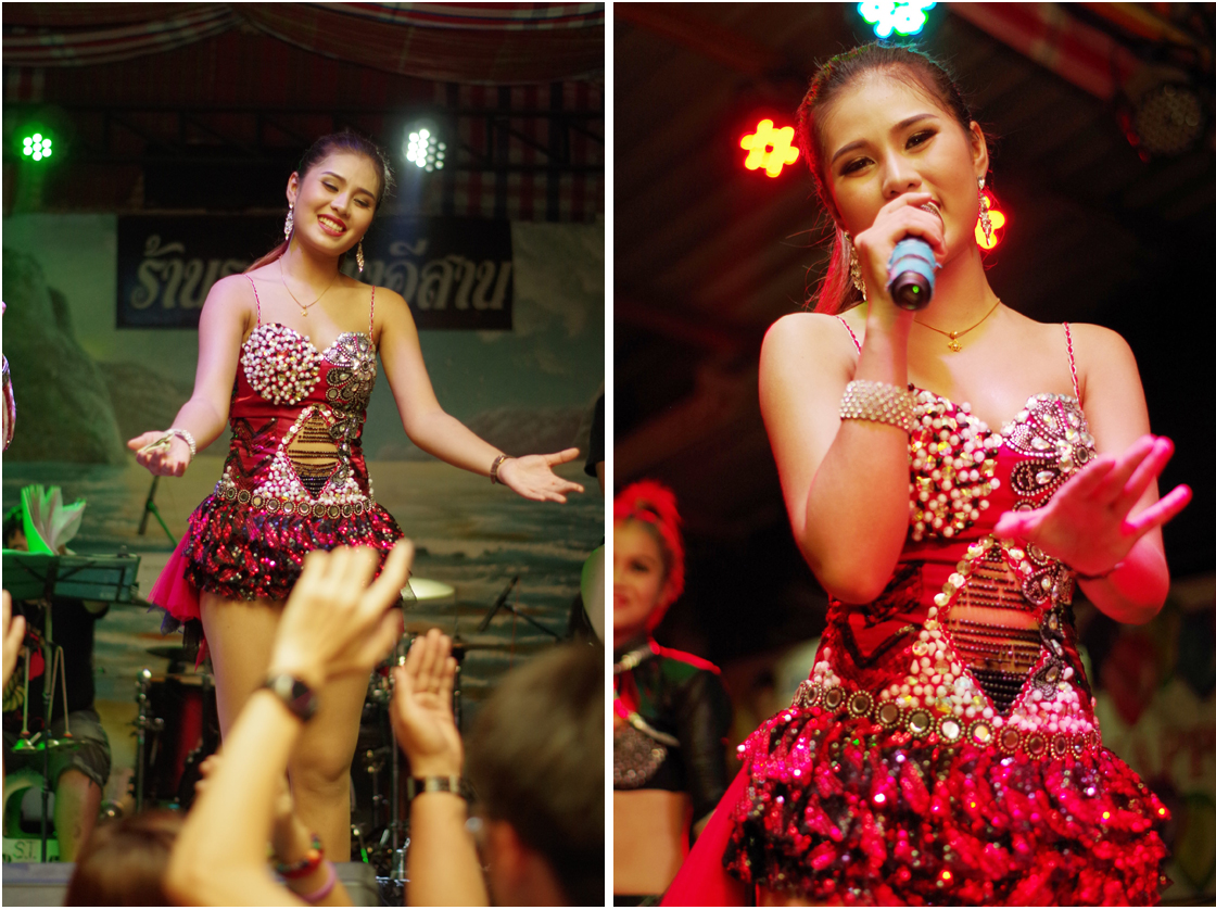 ルークトゥン・モーラムのコンサートで、あまり名前の知られていない歌手はたいてい、自分のオリジナル曲は少なめにして、他の歌手の人気曲を歌う事が多いのですが、フォンの場合はアルバムを出しているということもあって、前半は自分の曲で構成していました。これは自信がないとなかなか出来ない事です。