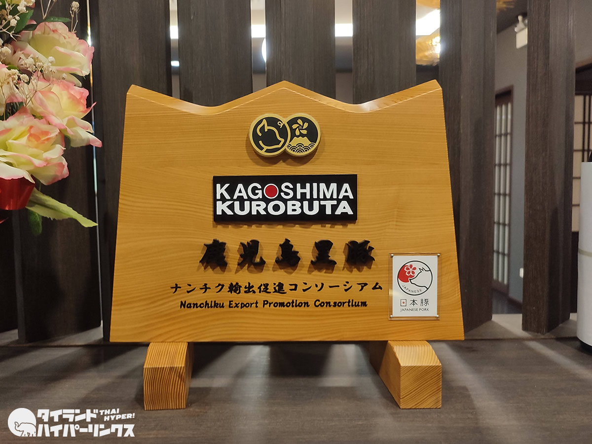 タイのレストランでは、時々「Kurobuta」というメニューを見かけることがあるのですが、どうやらこれは我々日本人が考える日本産の「黒豚」とは別物のようです。一方で「あじと 黒豚しゃぶしゃぶ バンコク店」の店頭には、鹿児島黒豚を輸入していることを証明する盾が置かれており、提供されているのも正真正銘の本物。我々が望んでいる「黒豚」がここにはあるのです。