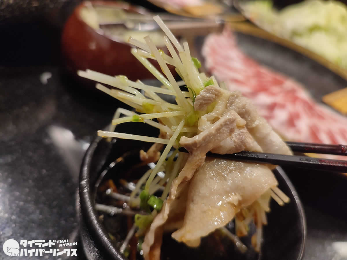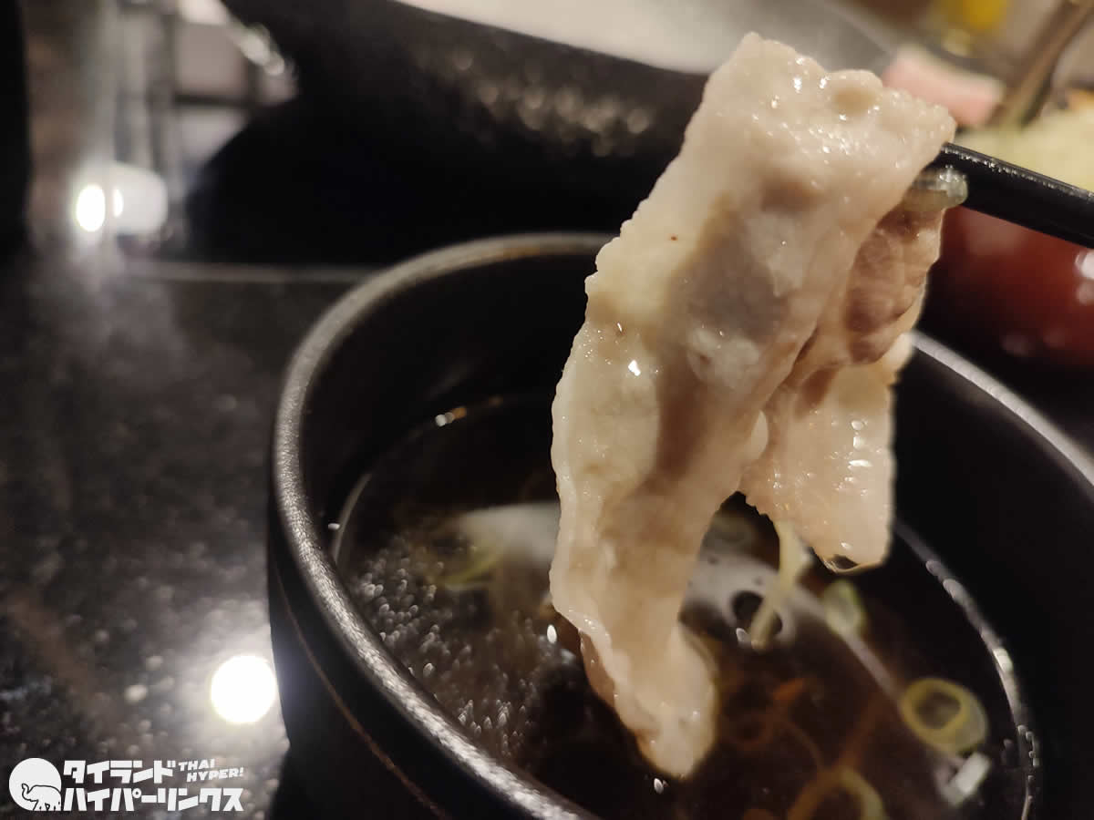 この日に「あじと」でいただいたのは、おすすめメニューの一つである、鹿児島県産六白黒豚しゃぶしゃぶの「さくらコース」(1999バーツ)でした。