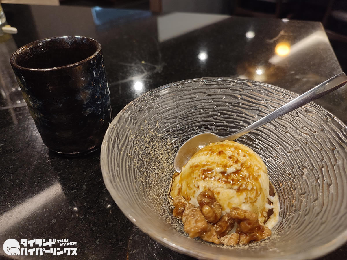 最後にアイスクリーム(黒糖とくるみにバニラアイス)でこの日のコースは終了です。
