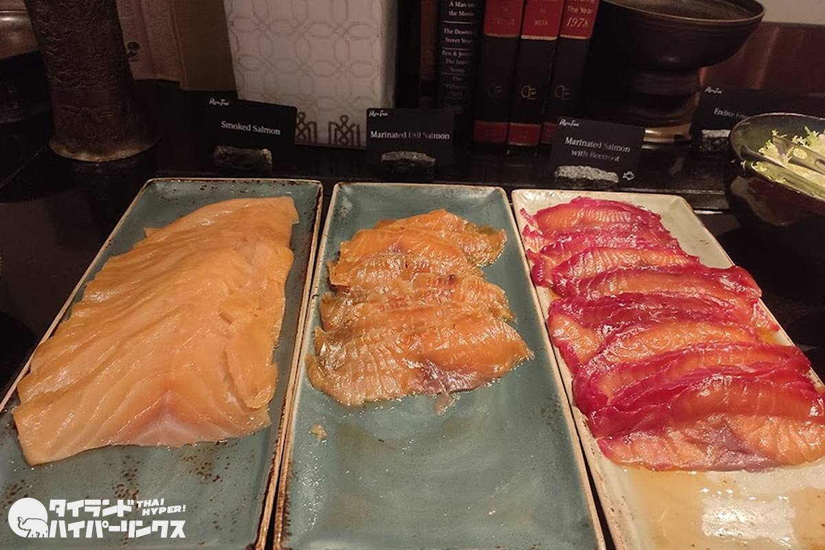 チーズコーナーあたりも充実のラインナップですが、嬉しかったのがサーモンが3種類も用意されていること。このスタイルは始めて見ました。スモークサーモンとマリネのサーモン。ぜひ食べ比べを。