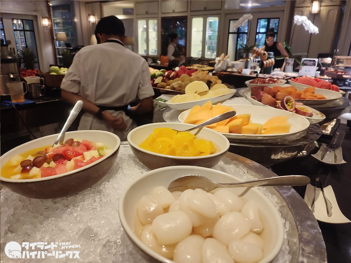 ホテルに宿泊したときの楽しみは朝食という方も多いでしょう。「アテネホテル」の朝食はビュッフェスタイルで、1フロアーの「RAIN TREE CAFÉ」へ。ラグジュアリーな朝食が用意されています。