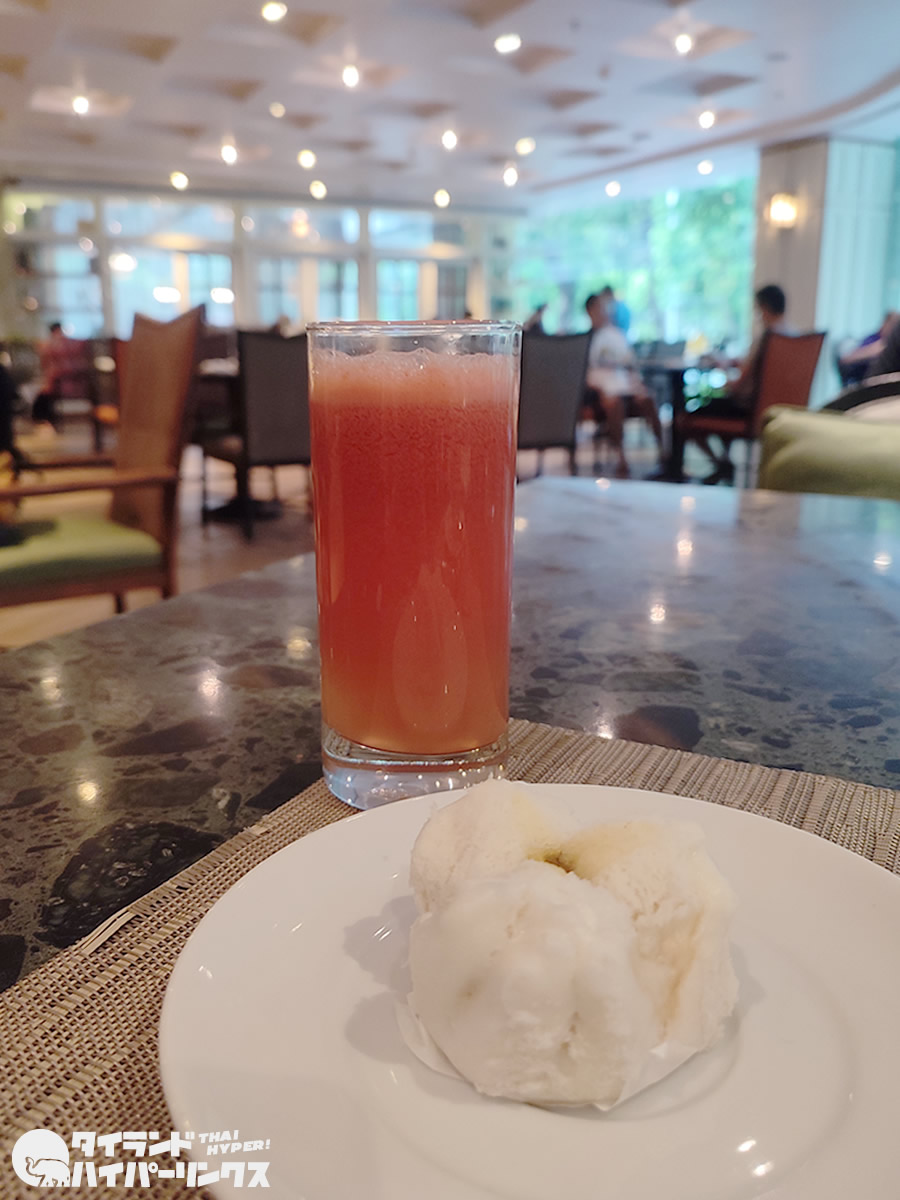 たっぷりと食事をした後は、ミックスジュースで締めることにしました。ここではその場でフレッシュジュースを作ってくれるので、おまかせでオーダー。甘い中華まんと一緒にいただき、この日の朝食は終了です。毎日こんな朝食だったら、どれほど幸せでしょう(笑)。