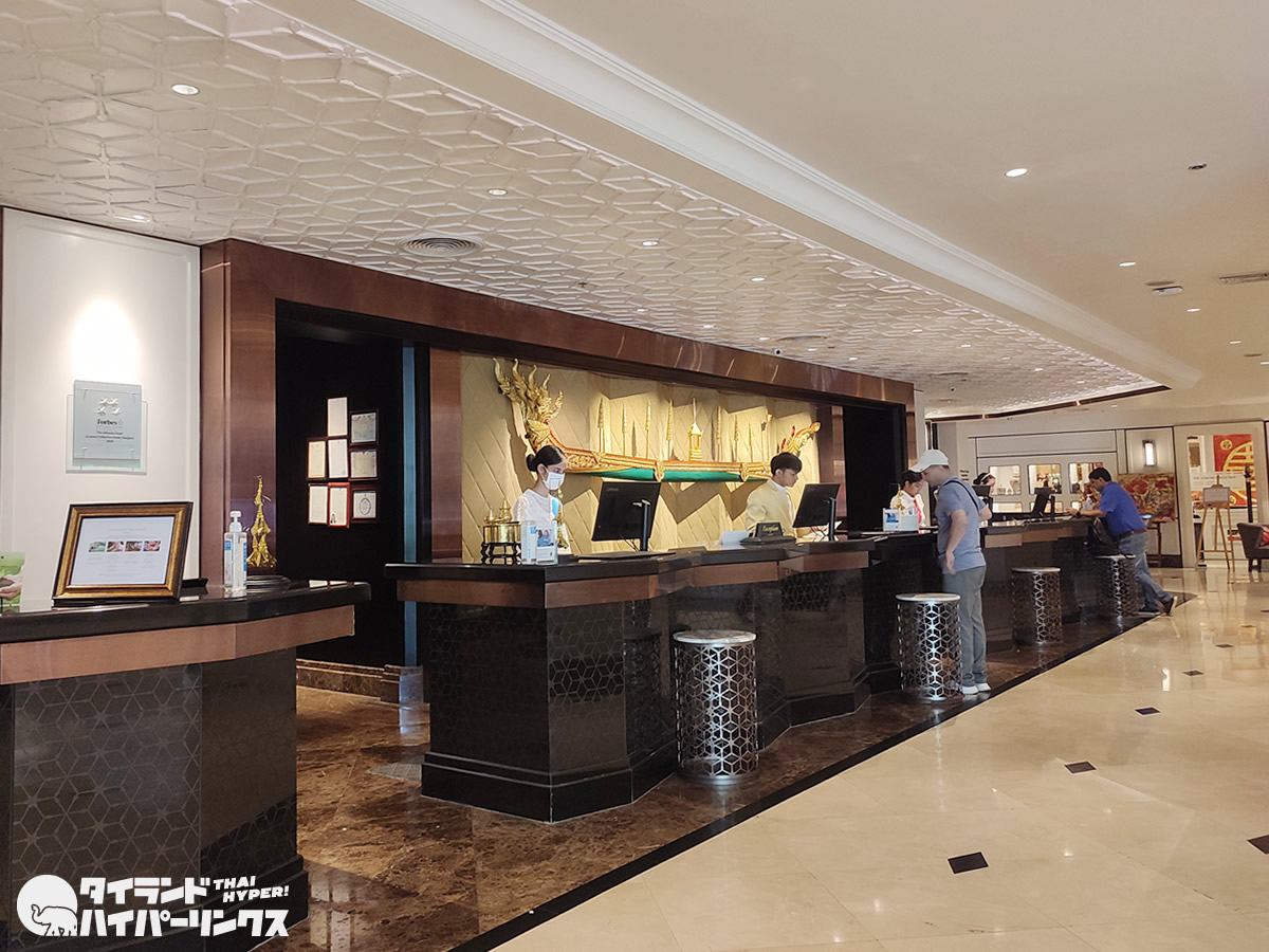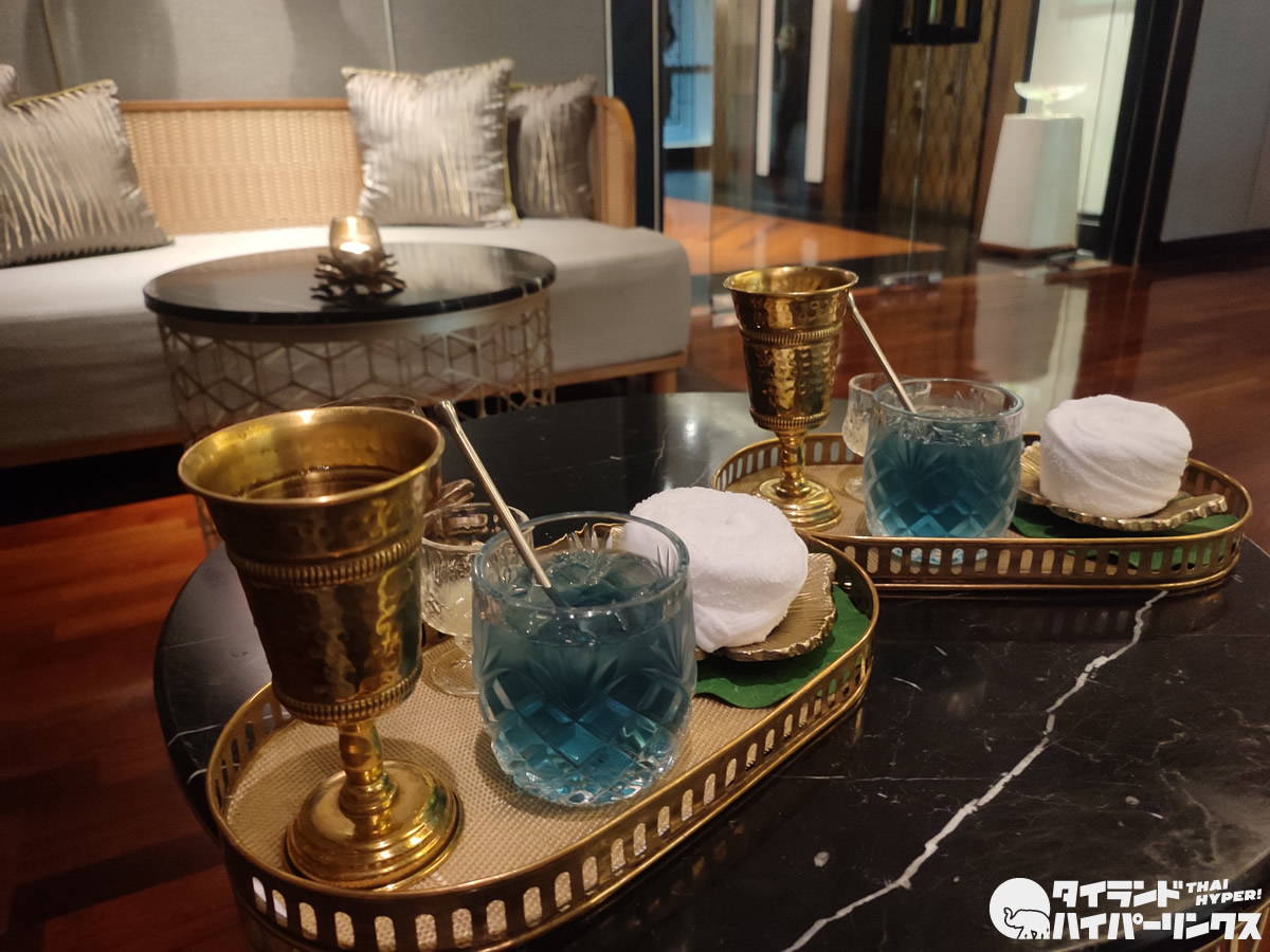 冷たいドリンクとお絞りが用意される中、チェックインをして早速客室へ。ちなみに、この日、スタッフさんはタイの伝統衣装を身に纏っての接客でした。