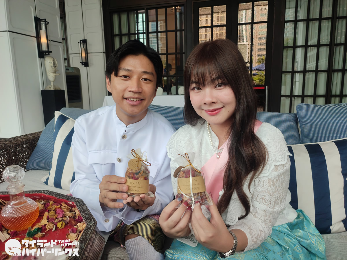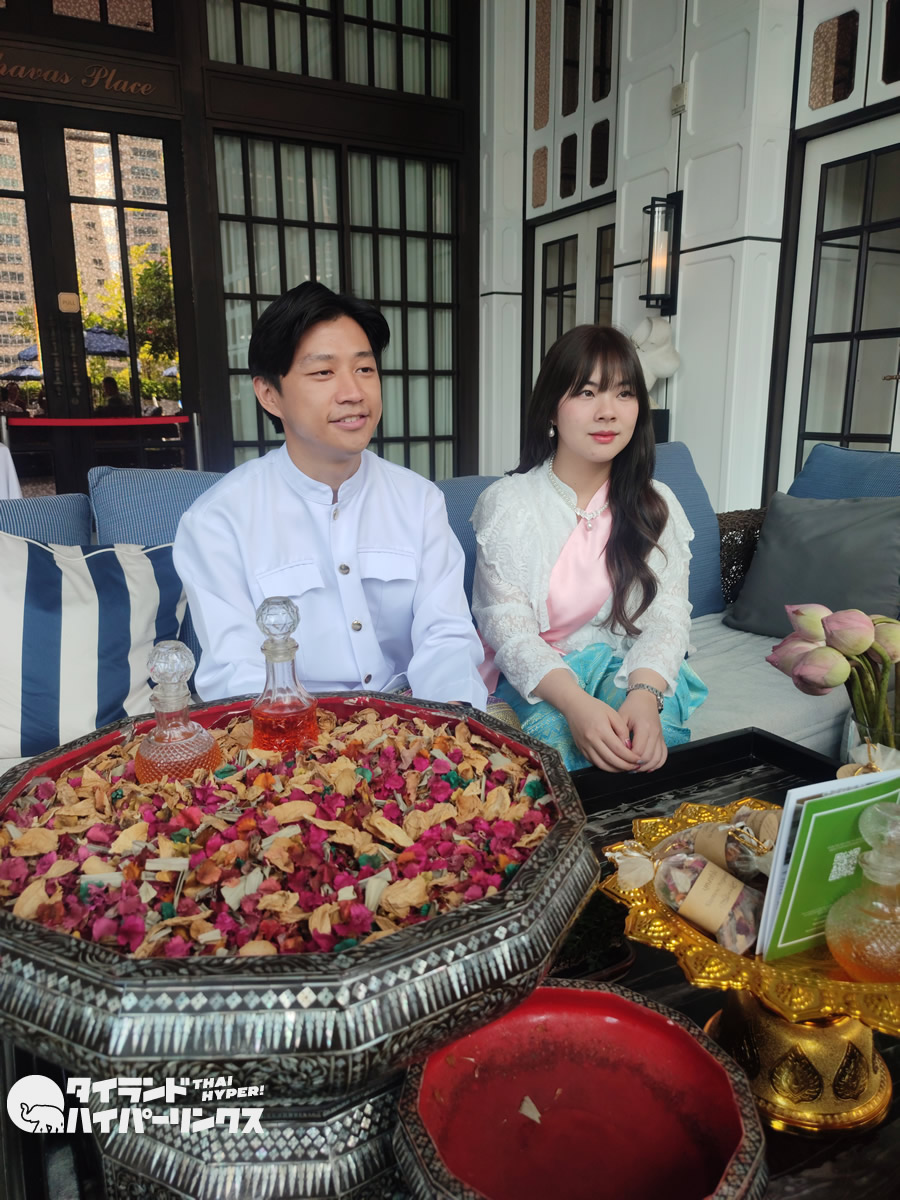 公式サイトによると「16世紀のアユタヤ王国では、王室の住居の香りにシャムのポプリが使用されていました。当ホテルでは、歴史的な芸術そして魅惑的なオーラを再現するために、王女が綴ったポエムの中に記された本格的な配合を使用しています。シャムのポプリから、当時のシャム王国の周辺地域との交流も発見できます。ポプリという意味の「ブンガランパイ」は、古いジャワ語で「花」という意味のブンガと「さまざまな」という意味の「ランパイ」を組み合わせたものです。」