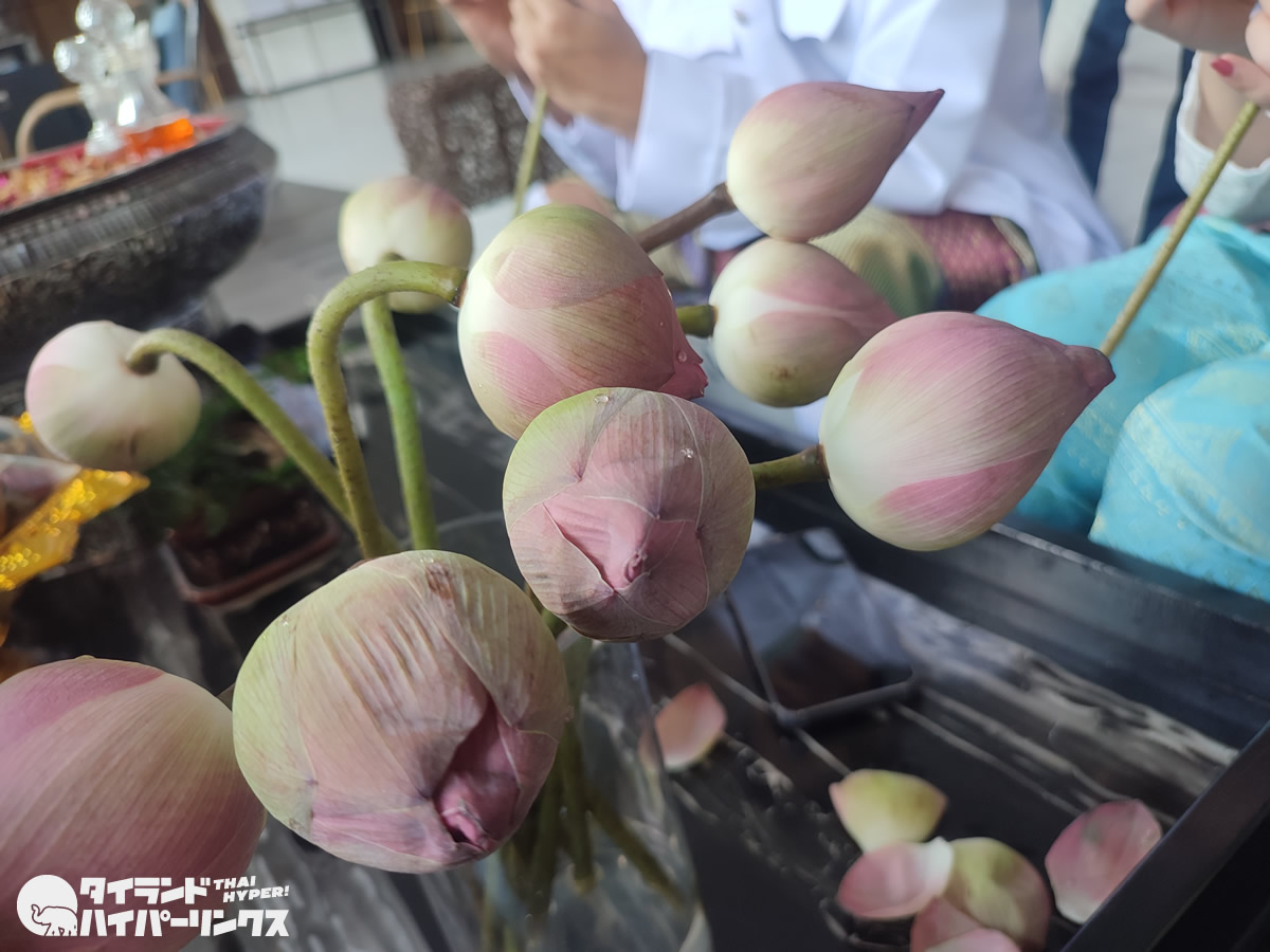 公式サイトによると「タイでは、高貴な蓮は清らかなシンボルであり、仏像に敬意を払う目的、または、さまざまな宗教儀式の際に仏教僧へのお布施として使われています。蓮の花を折るロイヤルアートに関しましては、13世紀のスコータイ王国までさかのぼります。王族は宗教的な祭りの際に蓮を使用するようになり、その習慣は国全体に広がりました。」