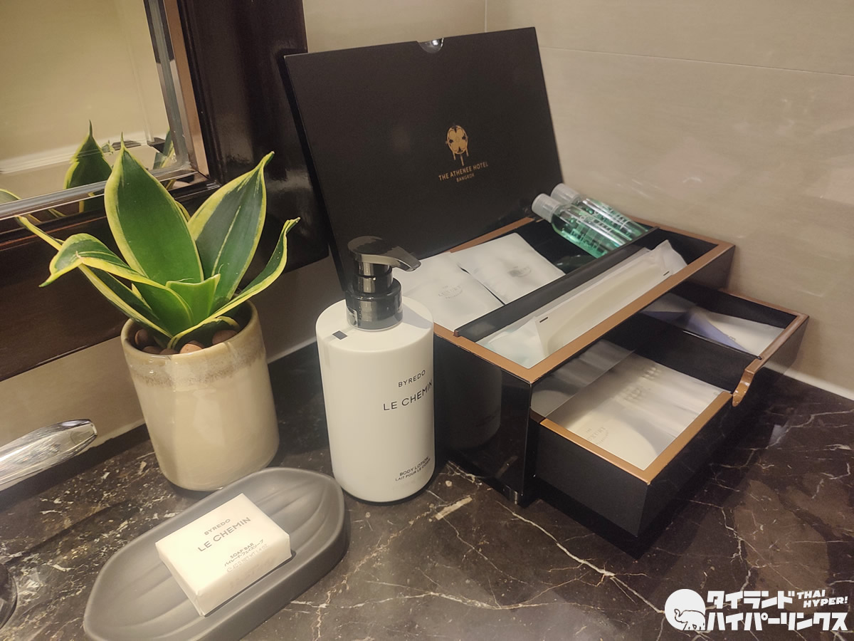 バスルームは広く、バスタブもゆったり。トイレの横にはシャワー室があり、シャンプやボディーソープなどはBYREDO LE CHEMINで統一されていました。