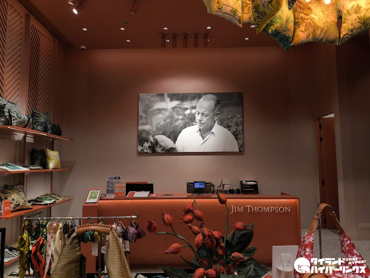 「ジム・トンプソン」は、タイのシルクを世界に広めたアメリカ人実業家ジム・トンプソン氏の名前がついた店で、1950年にバンコクのスラウォン通りで最初の店を構えました。しかしジム・トンプソン氏は1967年3月26日(日)、マレーシアのキャメロンハイランドの友人の別荘「ムーンライト・コテージ」で休暇を過ごしていた際に、忽然と姿を消しました。未だにジム・トンプソン氏の行方はわからず、謎に包まれたままです。