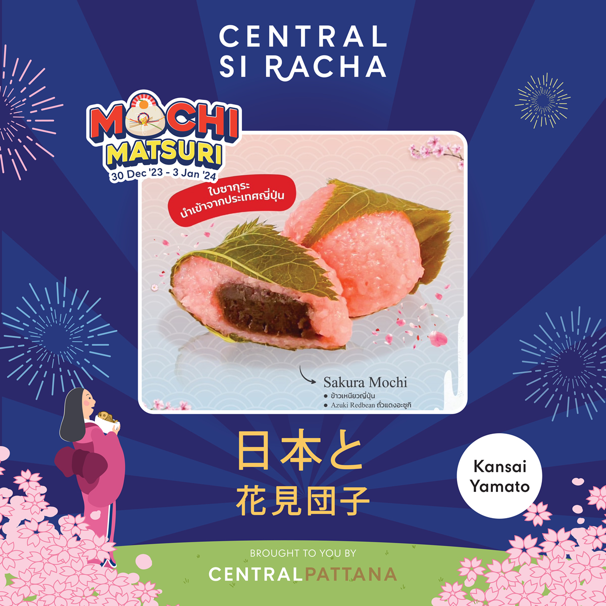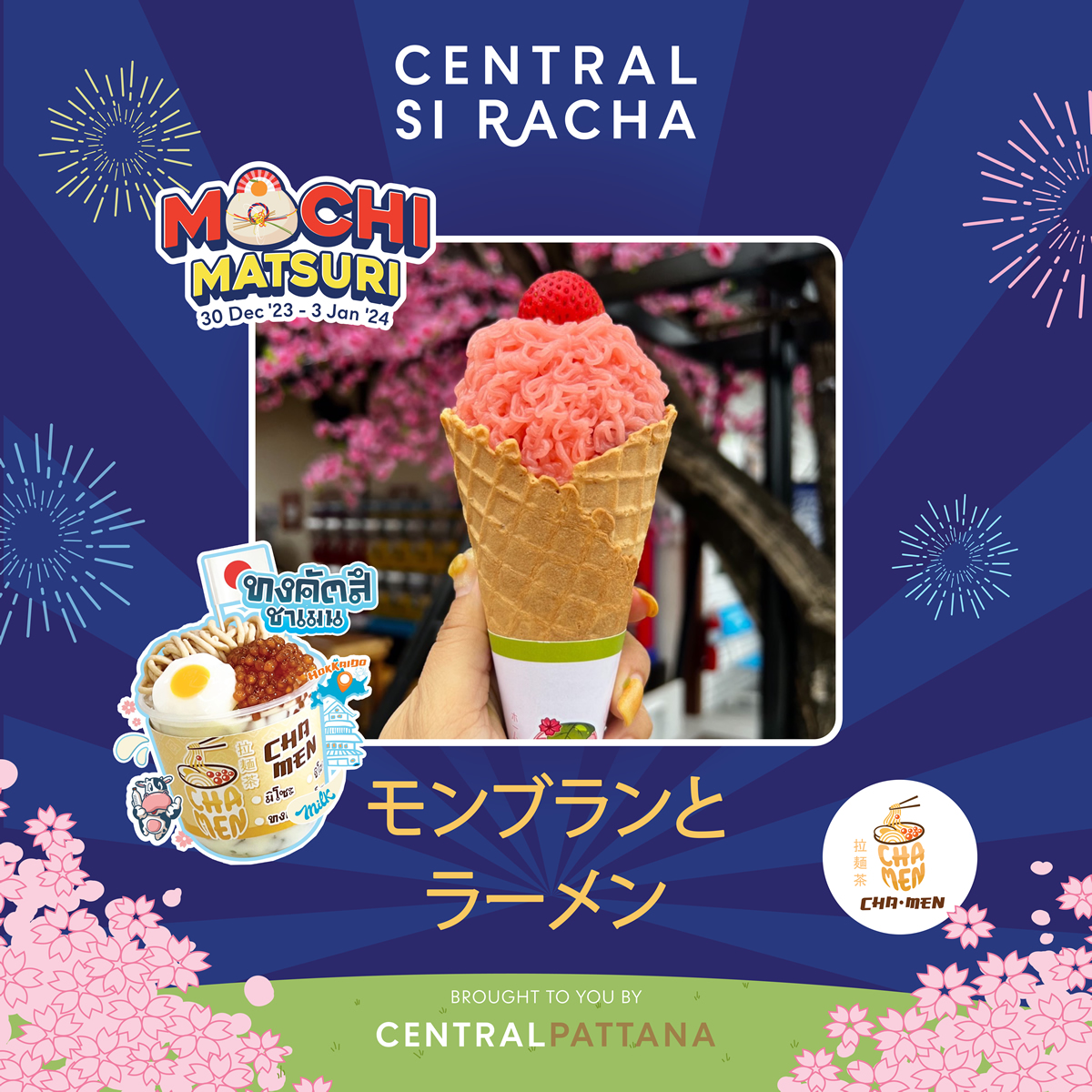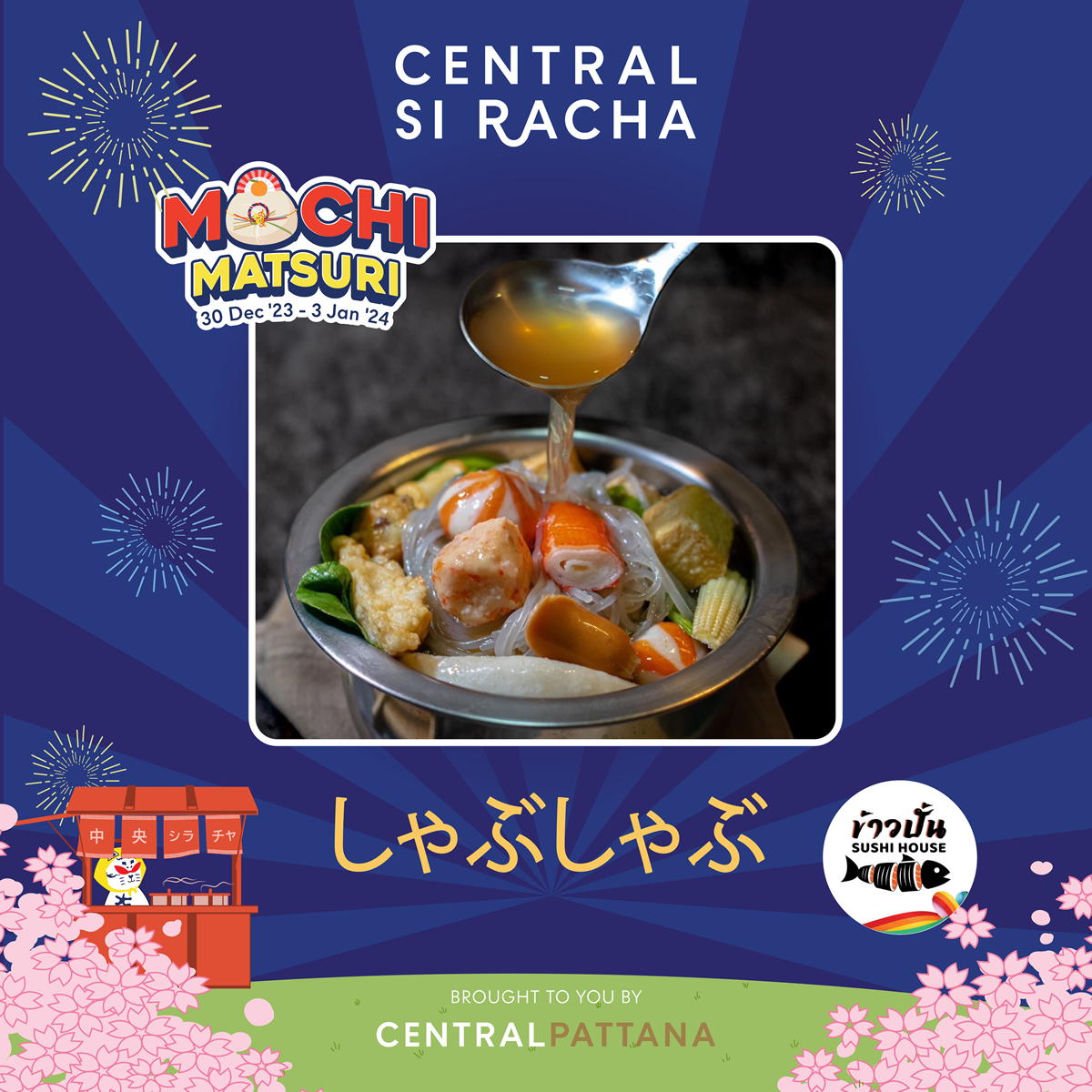 7000人の日本人が暮らすチョンブリ県シラチャの「セントラル・シラチャ(Central Si Racha)」で2023年12月30日から2024年1月3日まで、「餅まつり(Mochi Matsuri)」が開催されます。会場はトップススーパー前のG階半屋外ゾーンアクティビティエリアです。