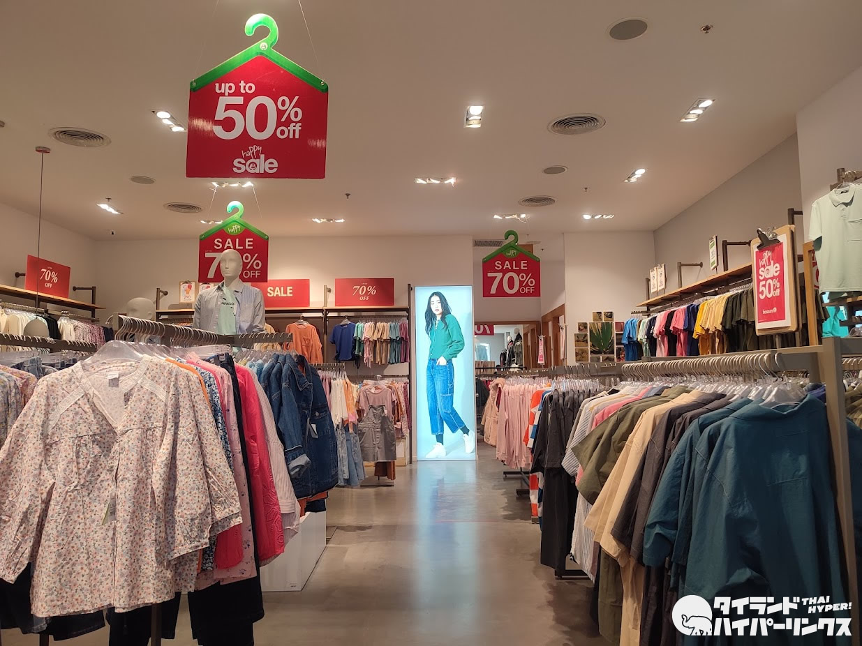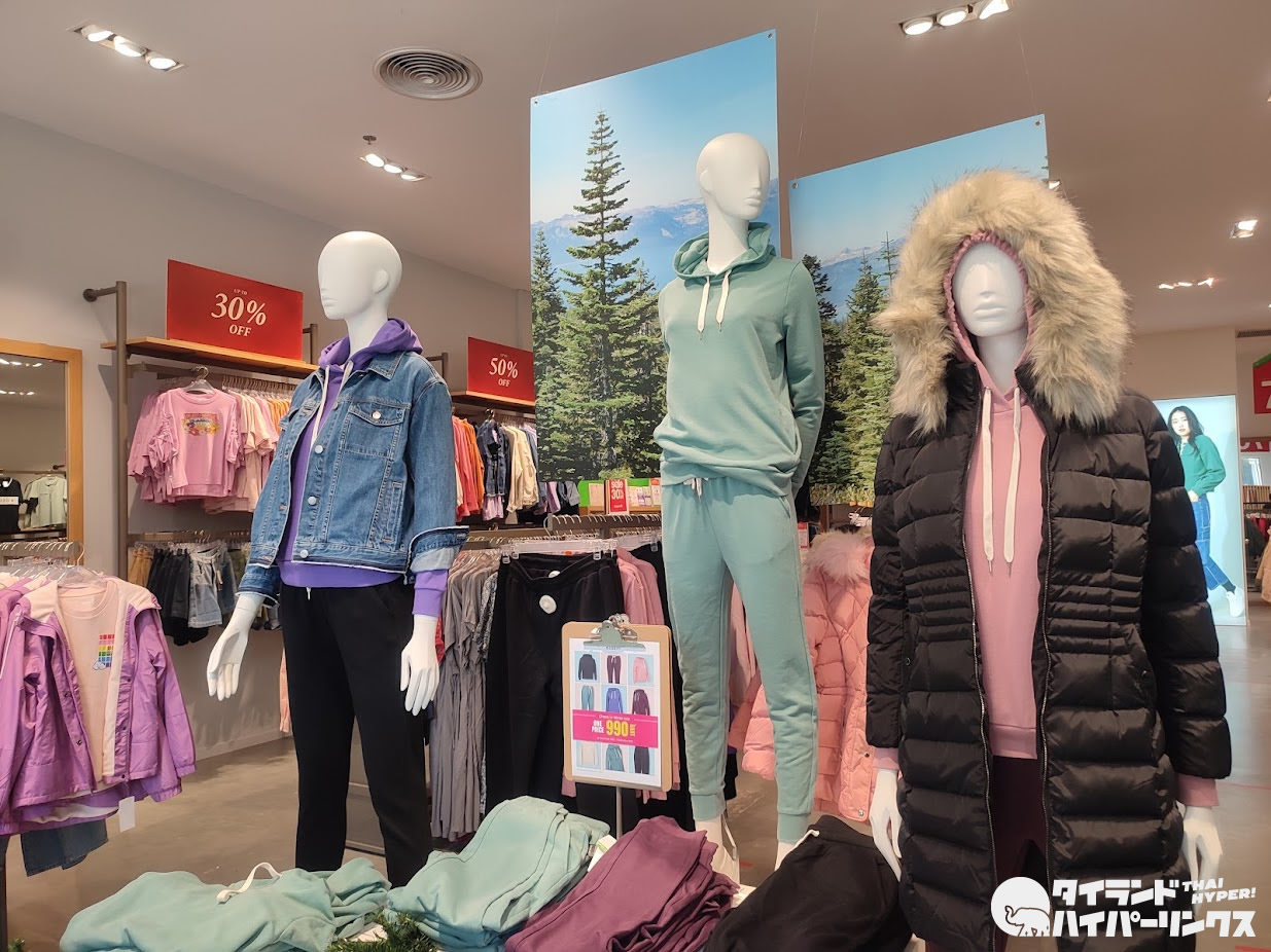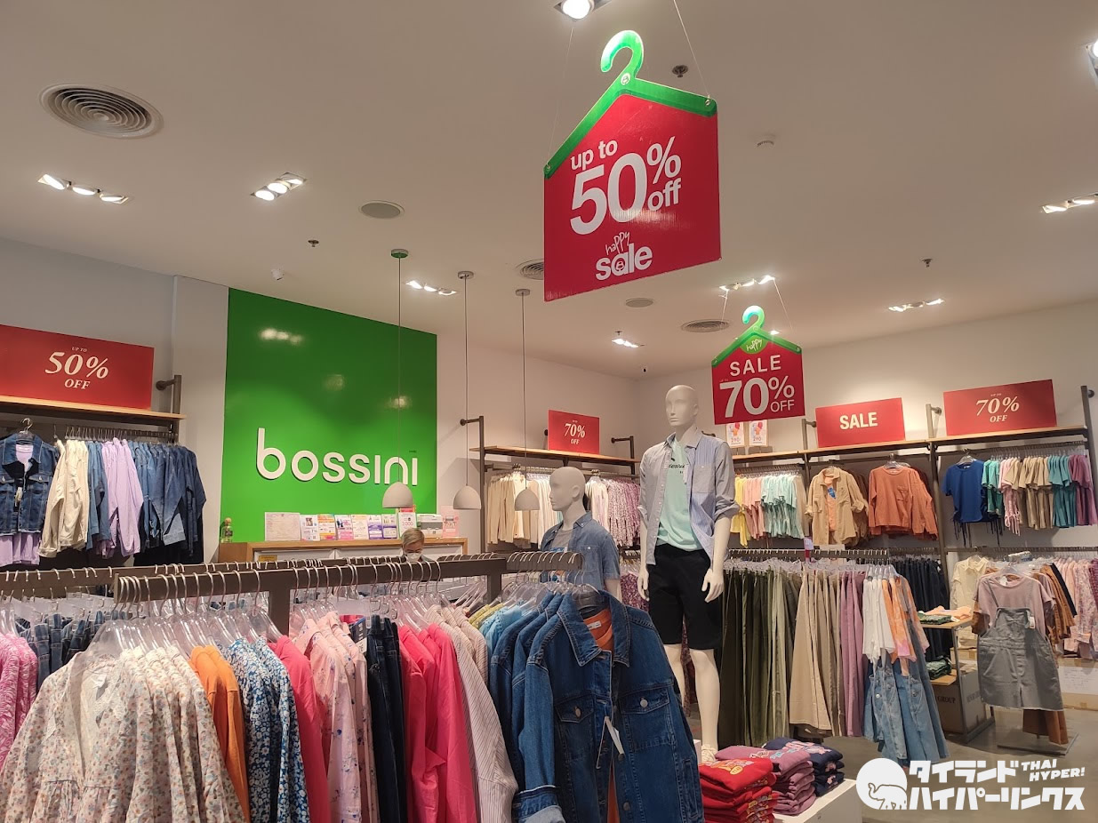 「ボッシーニ bossini」もタイではよく見かけるブランドですが、こちらも香港のブランド。お手頃価格の商品が、さらに最大7割引。ここもまた、冬服が充実しています。