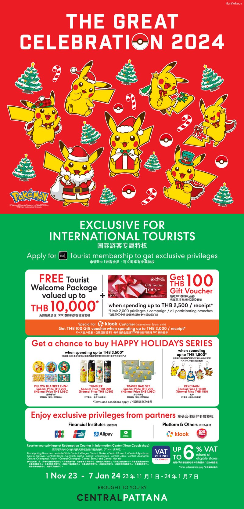 たとえば3500バーツ以上のお買い物で、通常価格1050バーツのピカチュウのタンブラーやバッグなどを299バーツで購入可能に。