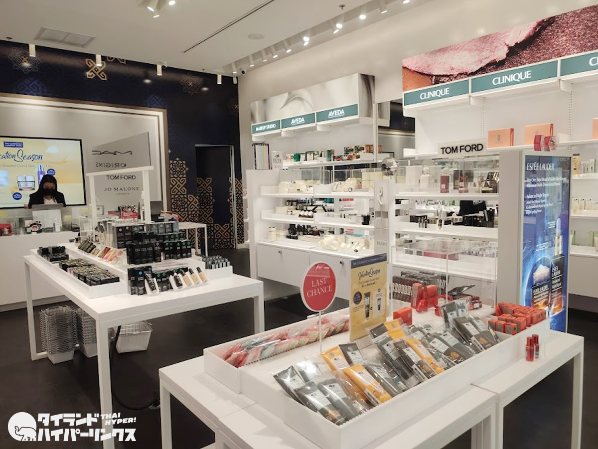 店内には「MAC」や「CLINIQUE」、「ESTÉE LAUDER」などの有名ブランドの商品が低価格で販売されていて、特に女性はここに留まってしまう可能性大!たっぷり時間の余裕をもって、店に入ることをおすすめします!