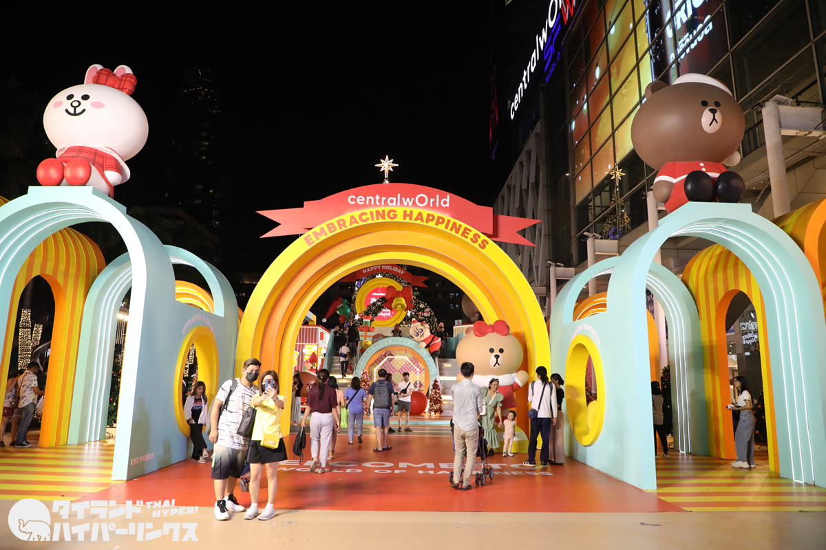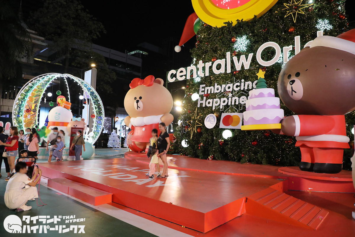 なお、2022年のセントラルワールドのクリスマスは、LINE FRIENDSとのコラボ。かわいいLINEのキャラクターたちと、40mを超えるという東南アジアで一番高く、バンコク中心部で最も壮観なクリスマスツリーに惹きつけられ、多くの人たちが記念撮影を楽しんでいます。