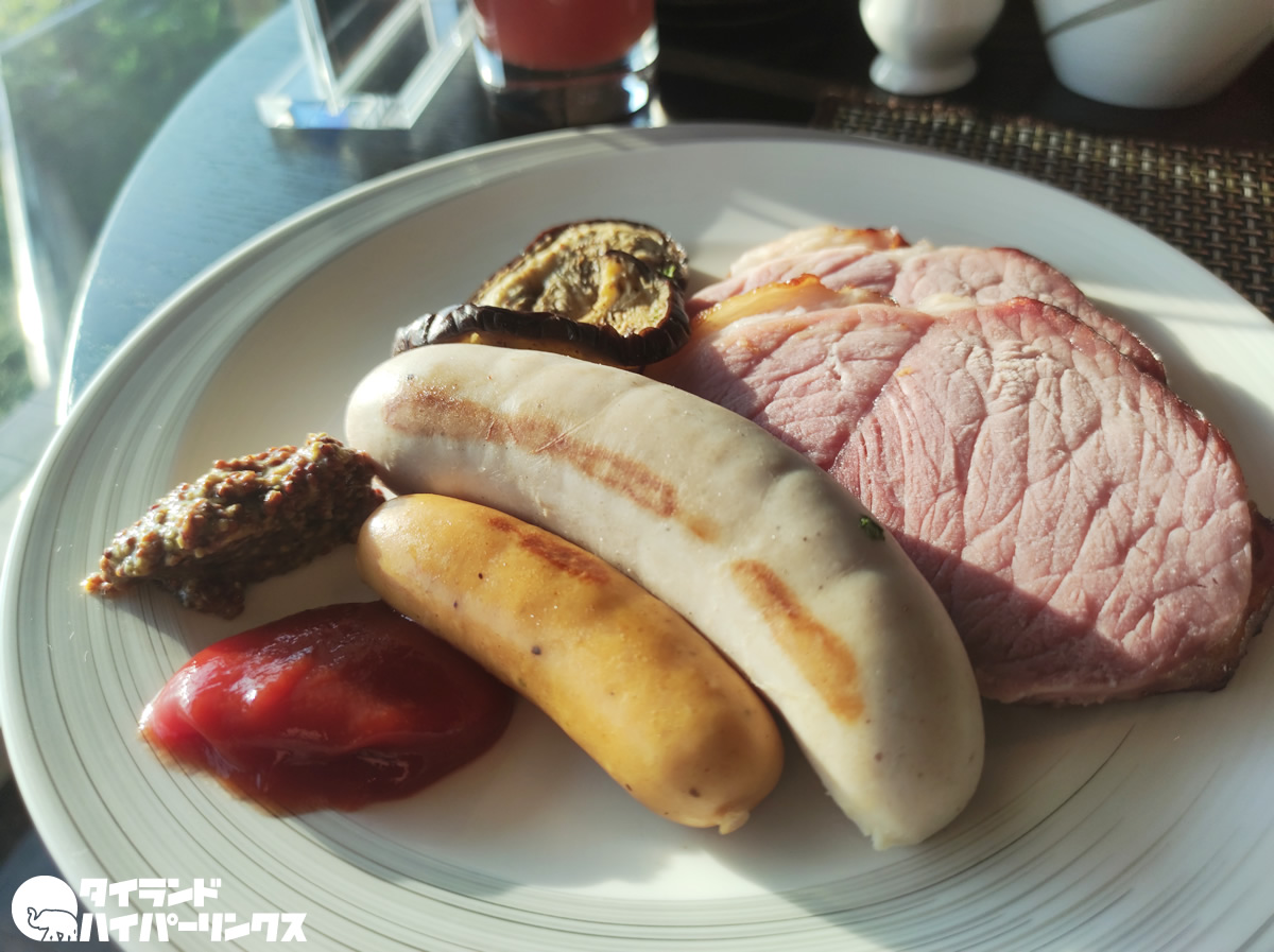 「ホテルのレベルと朝食のレベルは比例する」という持論の他に、「朝食のソーセージを見ればホテルのレベルが分かる」というのもあります(笑)。正に最高レベル!