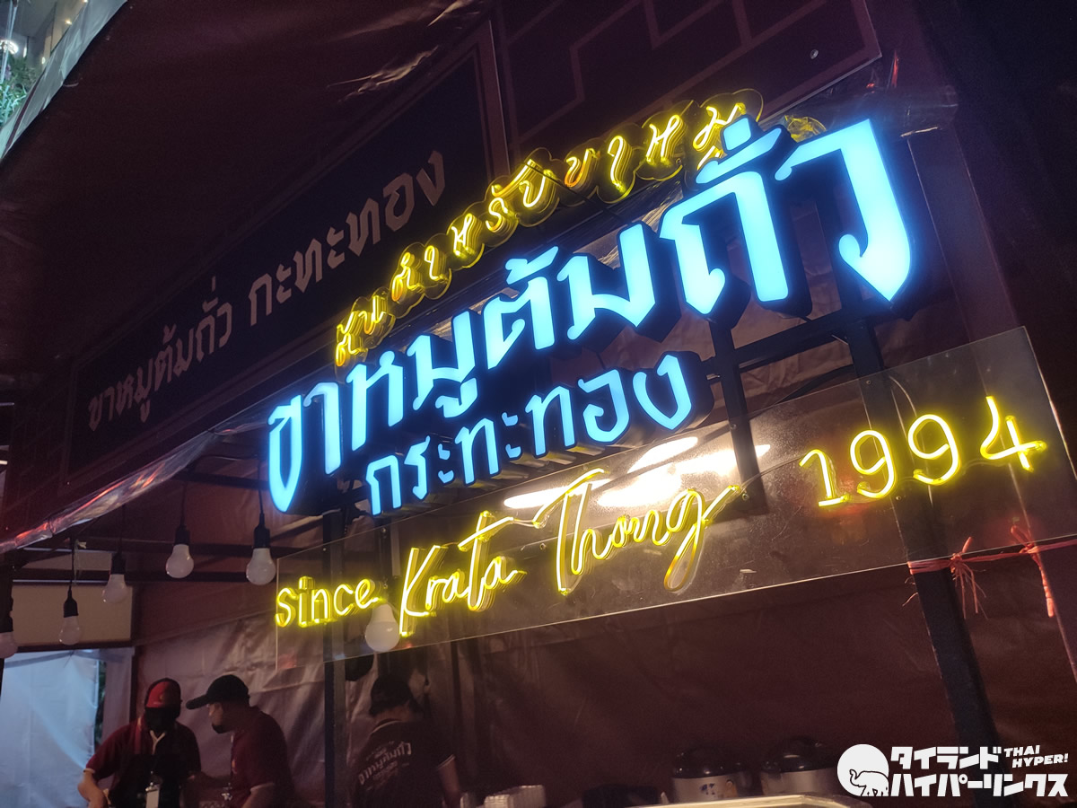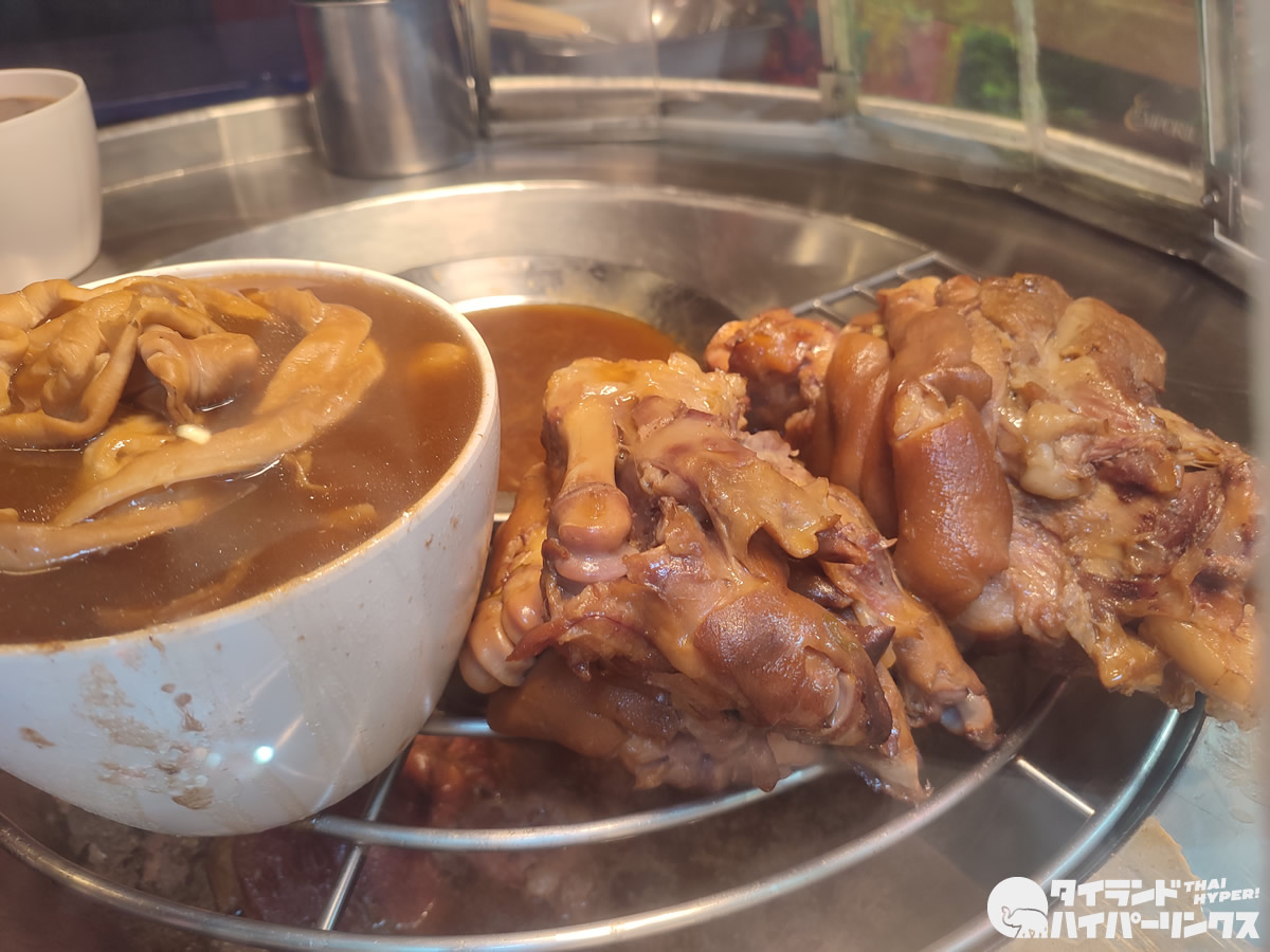 続いてネオン輝く豚足ご飯カオカームーのお店。タイでお馴染みの食堂料理ですが、たしかに中国がルーツという感じがします。
