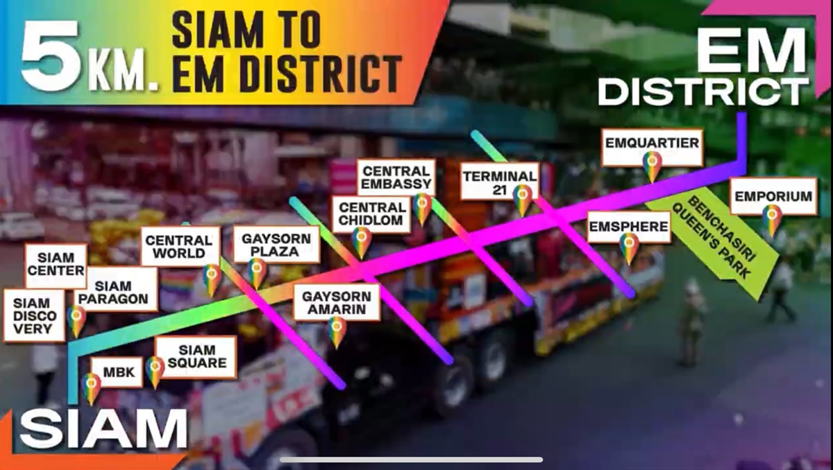 サイアムからプロムポンにあるEM DISTRICTへと続くルートには、レインボーの装飾と歓声、そしてそれぞれの物語を背負った笑顔があふれるはず。この瞬間、スクンビット通りは「誇り」を可視化するキャンバスになるのです!