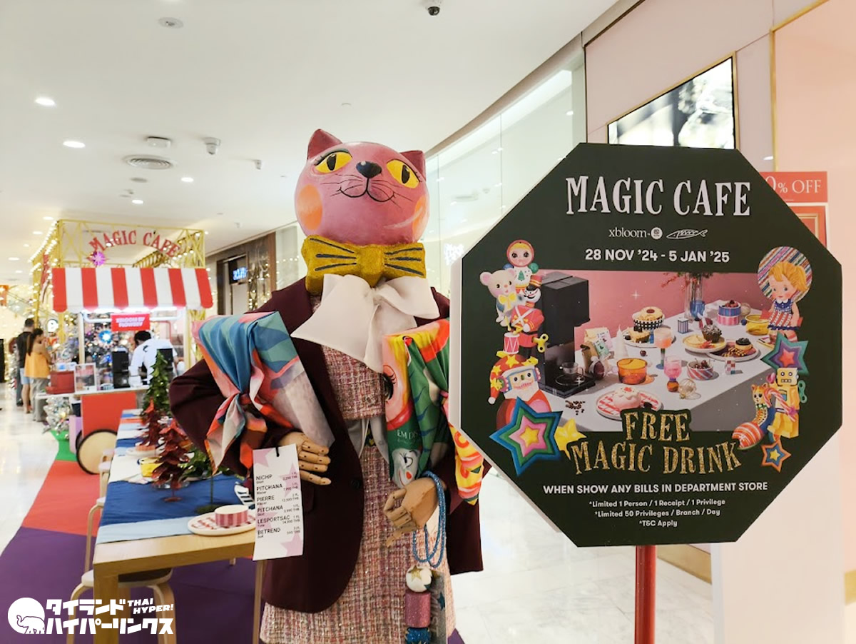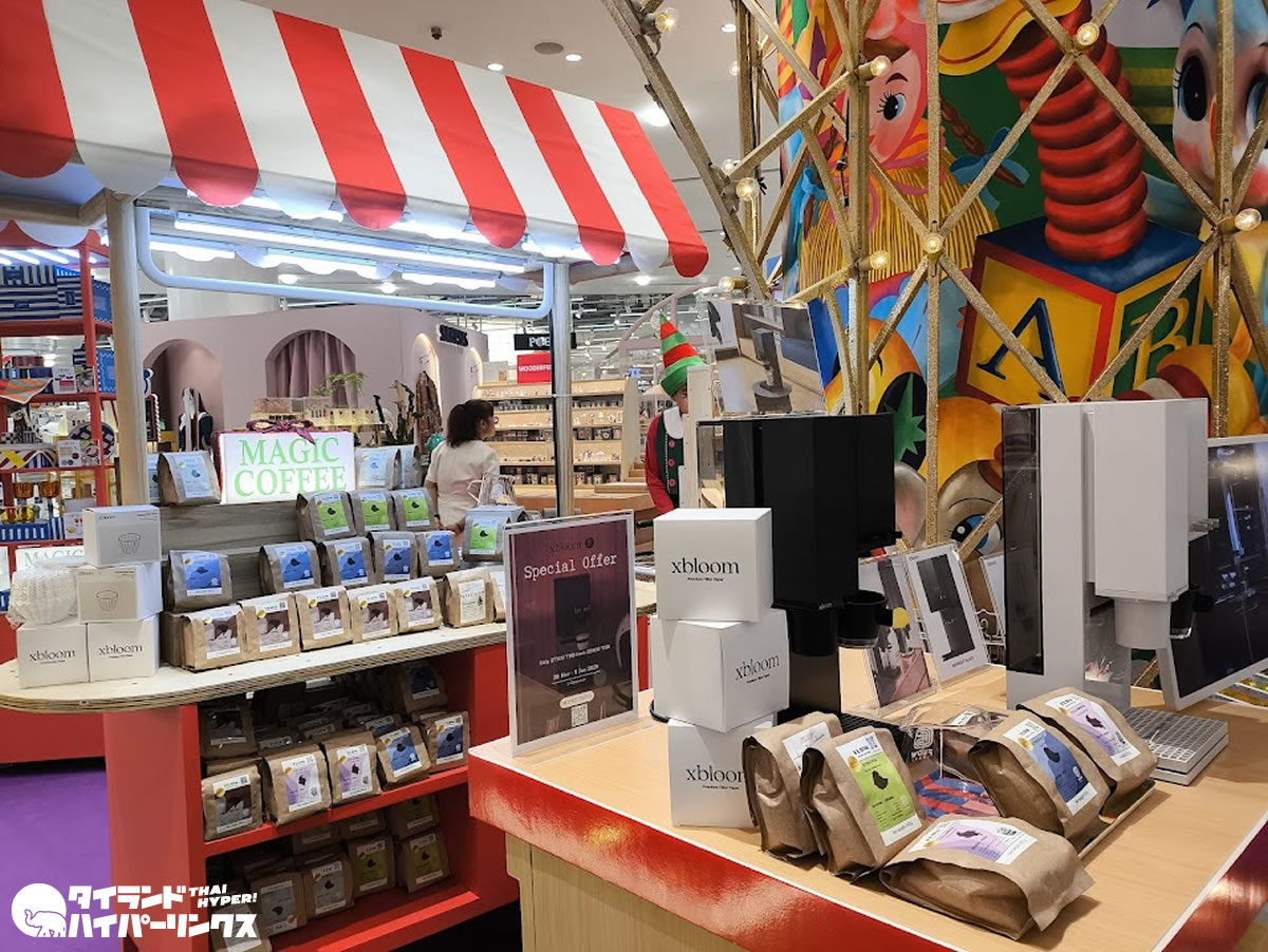 「ホリデーマジックストア」のすぐ近くでは「マジックコーヒー」開催中。金額を問わずお買い物をしたレシートを持っていくと、コーヒーがいっぱいプレゼントされます。1日限定50人までなので、お早めに!