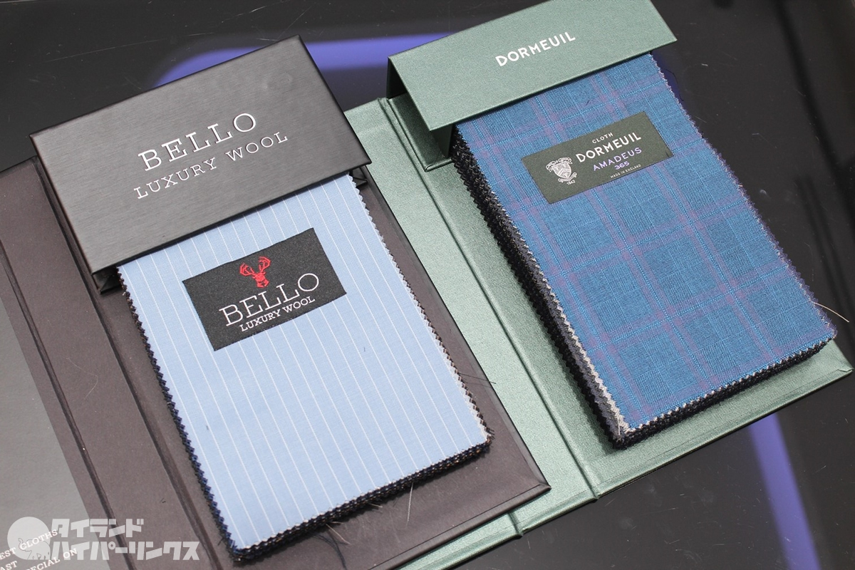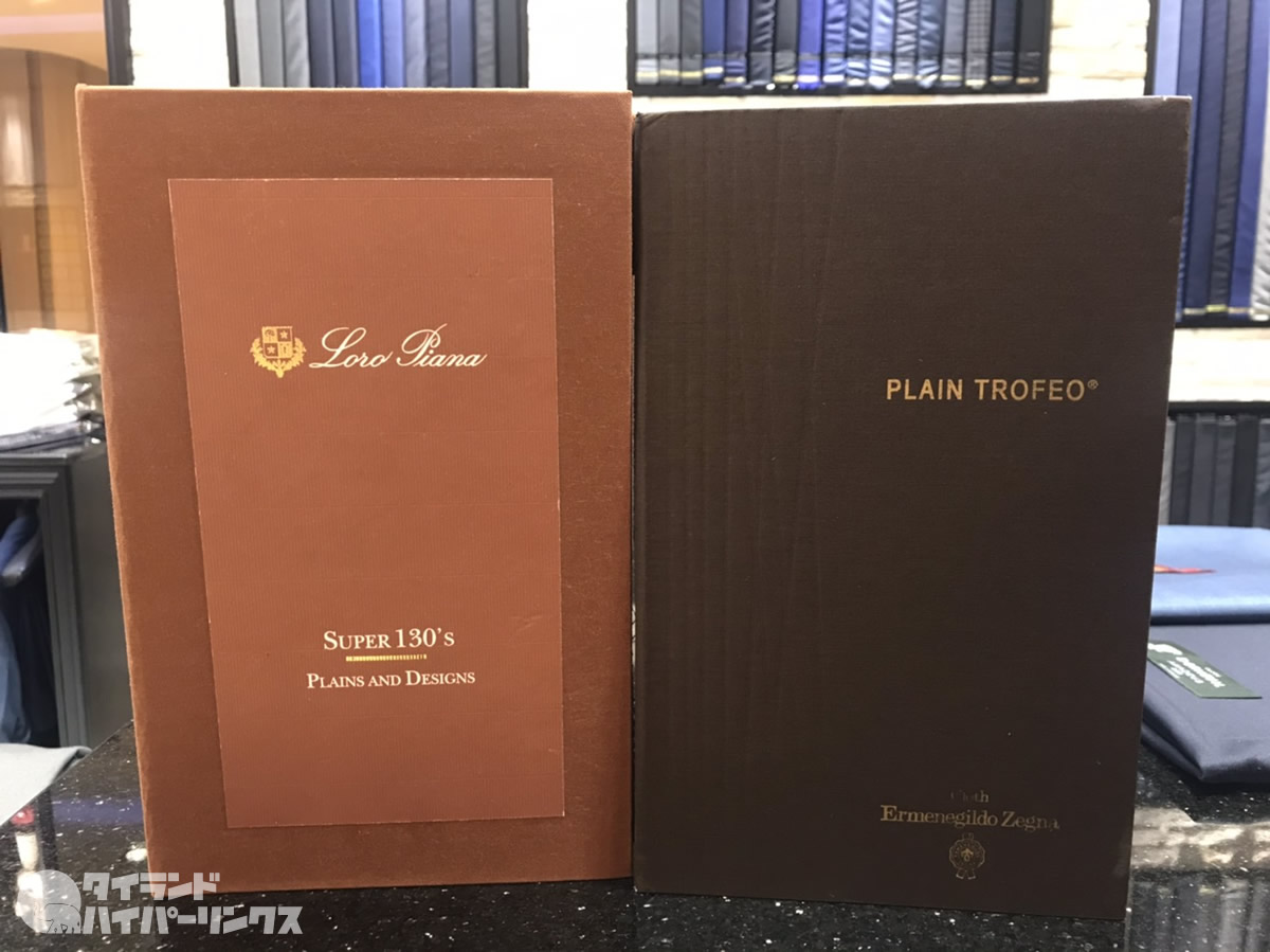 などのイタリアやイギリスの最高級織物ブランドの素材を使ったオーダーメイドのスーツが3万バーツからという破格の価格。ちなみに他の織物であれば8千バーツから作ることが出来ます。色んな織物があるので興味がある方はお店にお問い合わせください。