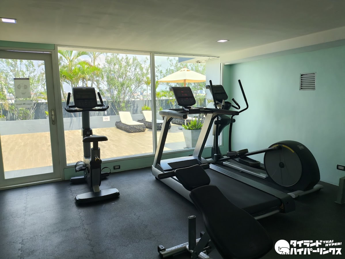 さらに、同じく屋上には24時間利用可能なジムも設置されており、滞在中でも自分のペースでトレーニングが可能です。