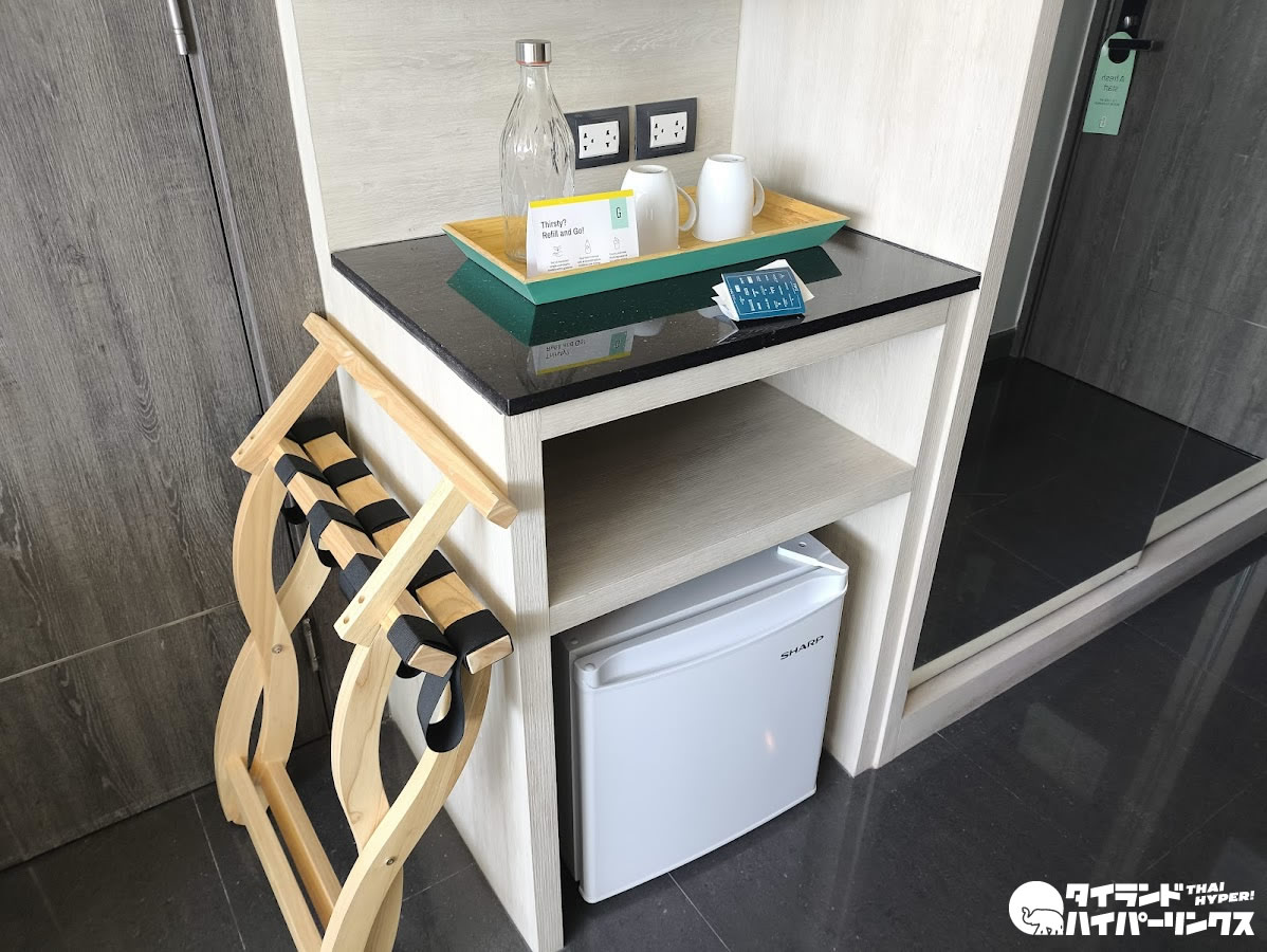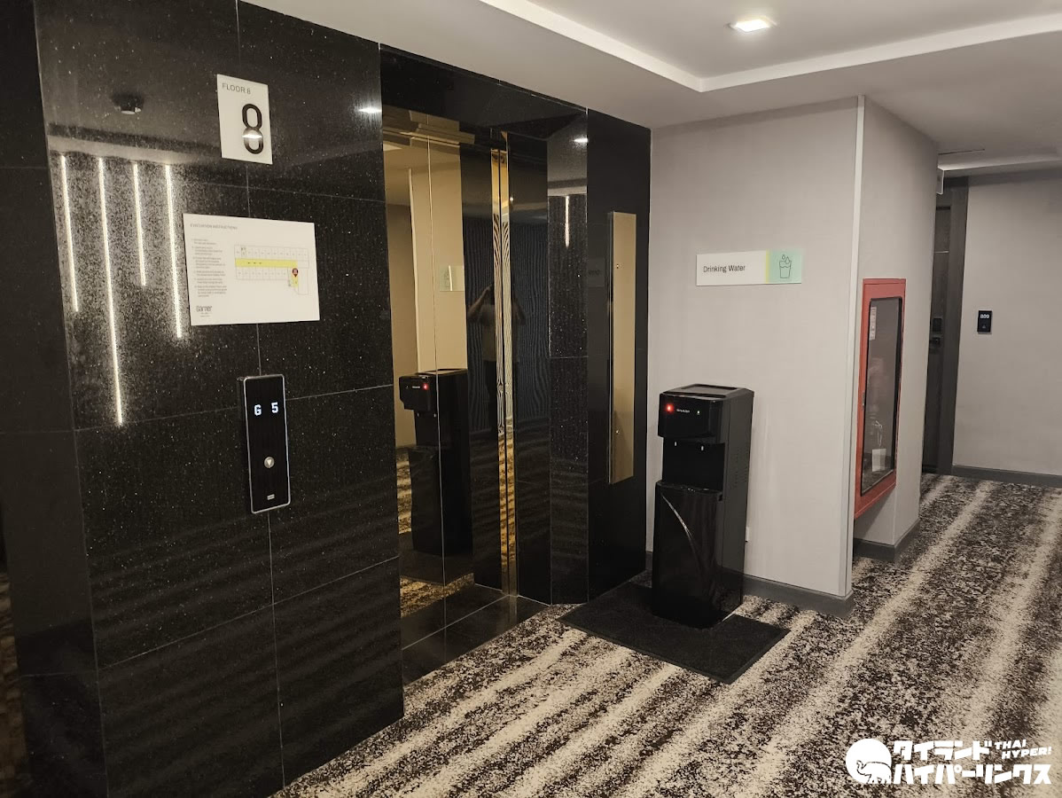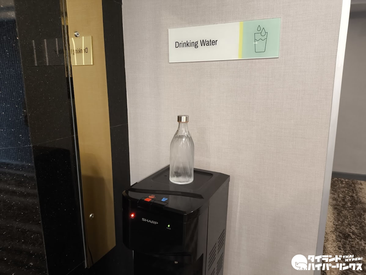 また、このホテルでは客室にペットボトルの水は置かれておらず、空のボトルが用意され、エレベーター横などに設置された給水器から水を補充するセルフサービス方式が採用されています。環境への配慮を感じる仕組みで、日本のGarnerブランドでも取り入れられているスタイルとのことです。