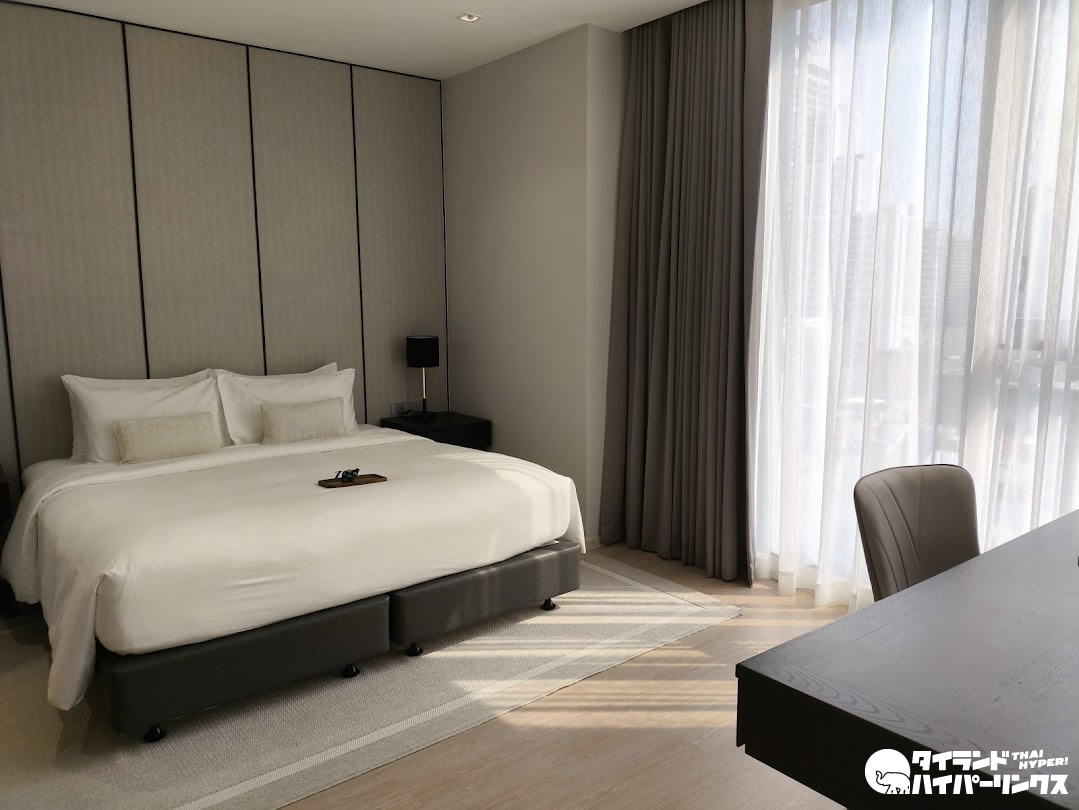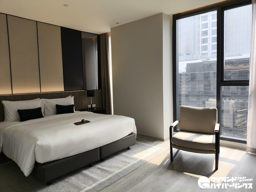 利用した12A階の「Superior One Bedroom Suite」は、約60㎡のワンベッドルームタイプ。リビングとベッドルームがしっかり分かれており、ドアを開けた瞬間から空間に余裕を感じます。いわゆるホテルの一室というより、レジデンスに近い印象で、広くてとても気持ちが良いです。