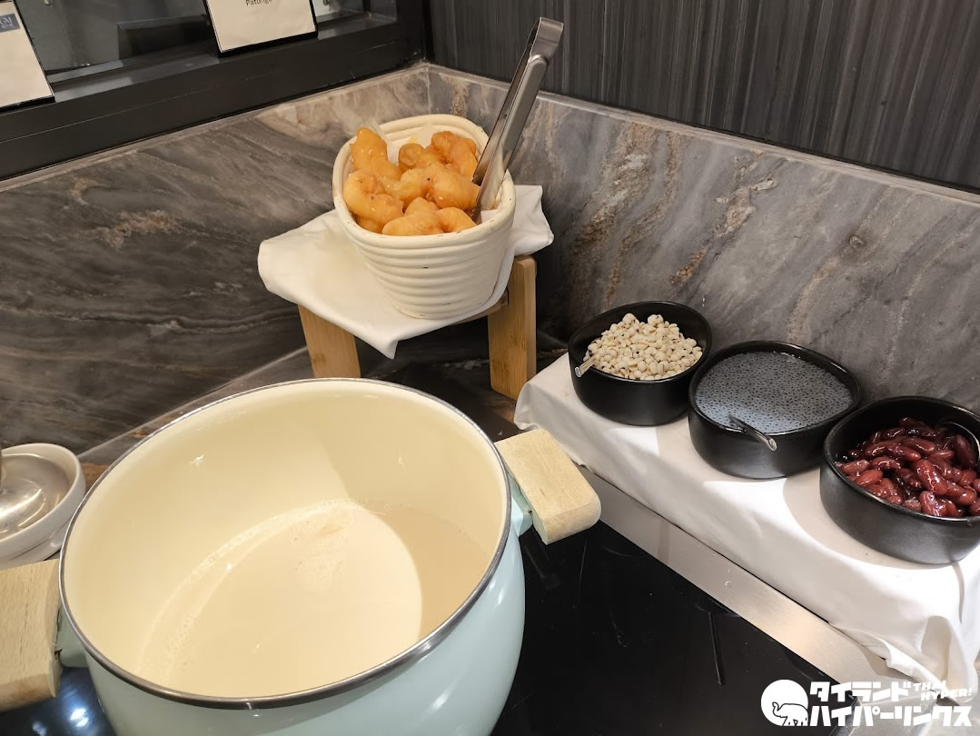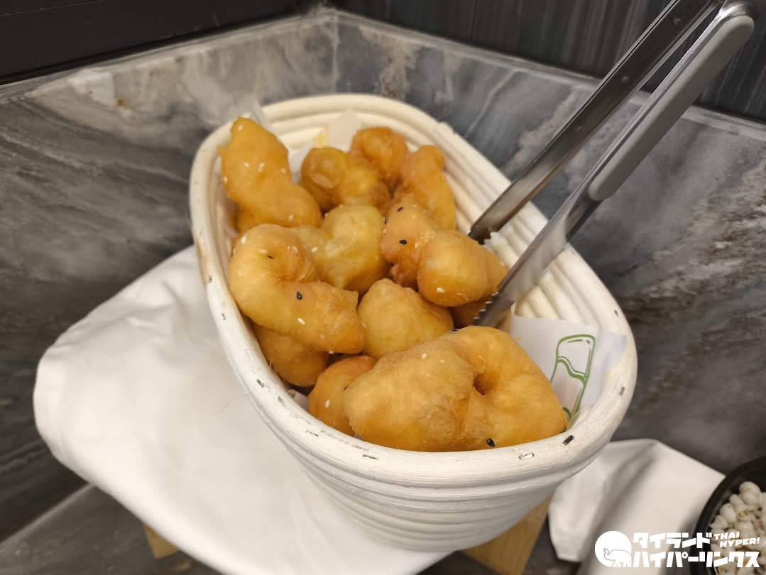 タイの定番の朝食メニューであるパートンコー(揚げパン)も並びます。