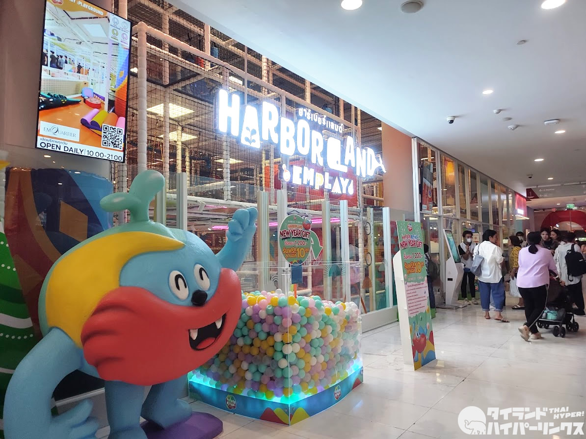 BTSプロムポン駅前の大型ショッピングモール「エムクオーティエ(The EmQuartier)」C棟1階(グルメマーケットと同じ建物)に、子どもの屋内アスレチック「ハーバーランド(HarborLand)」がオープンしたと聞いて、早速行ってきました!