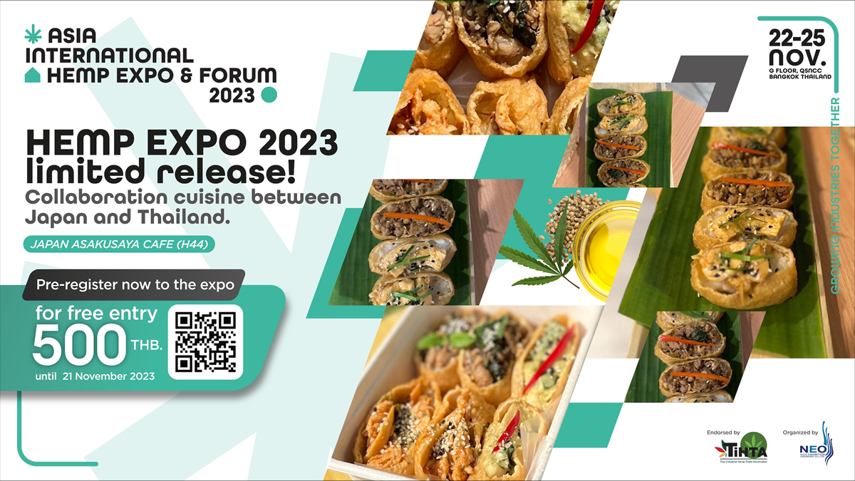 「HEMP EXPO 2023」は、11月22日(水)から25日(土)までの4日間、バンコクのクイーンシリキットナショナルコンベンションセンターで開催です。