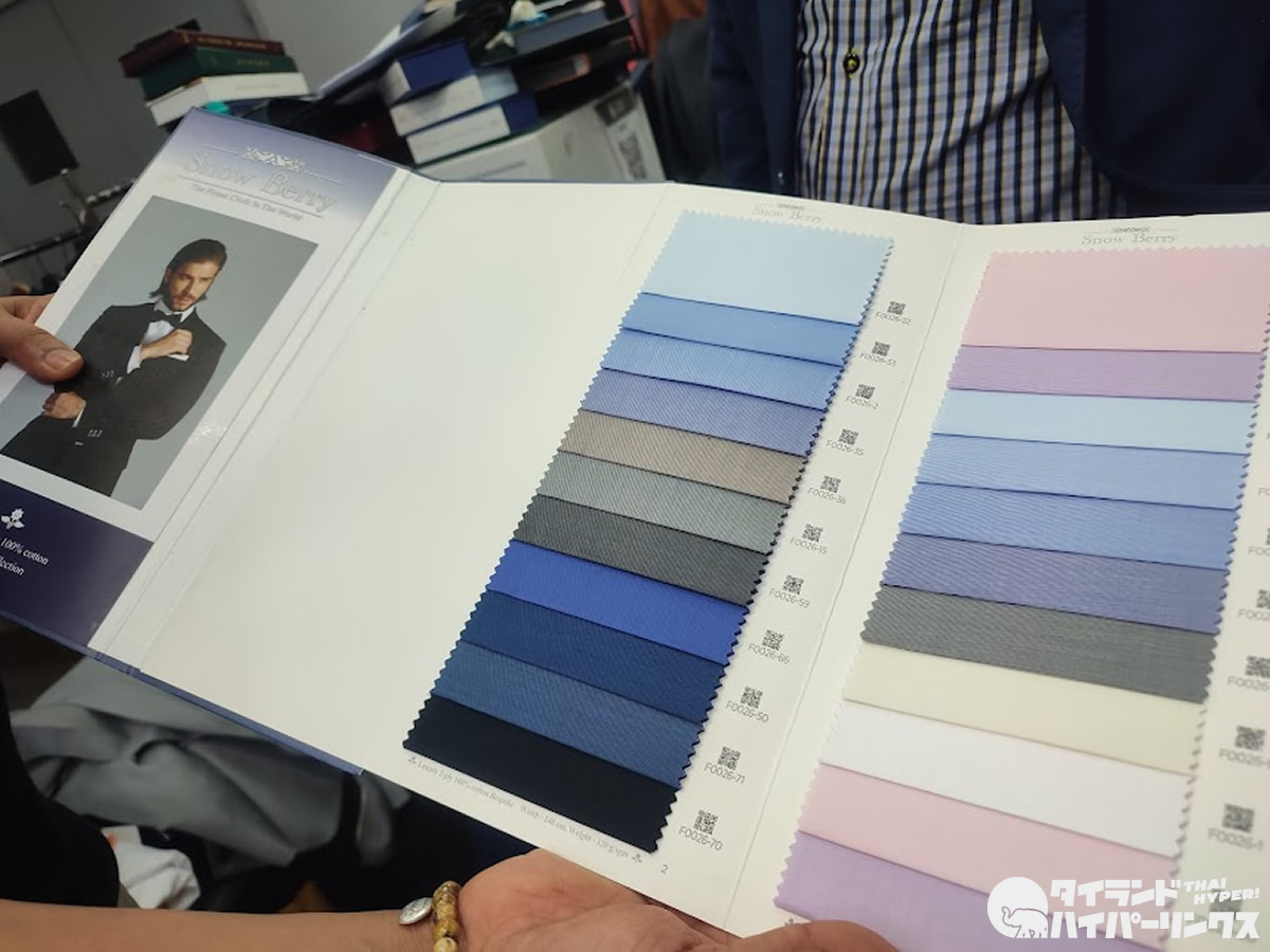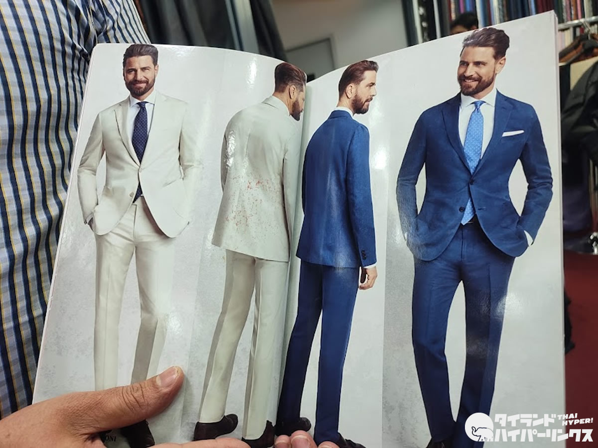 先程も書きましたが、「HongKong Fashion」でのスーツの価格の最安は、タイ産マイクロファイバー生地を使った上下のセットで5999バーツ(約2万4000円)。スーツの価格は生地で決まるので、デザインは好きなものを選ぶことができます。