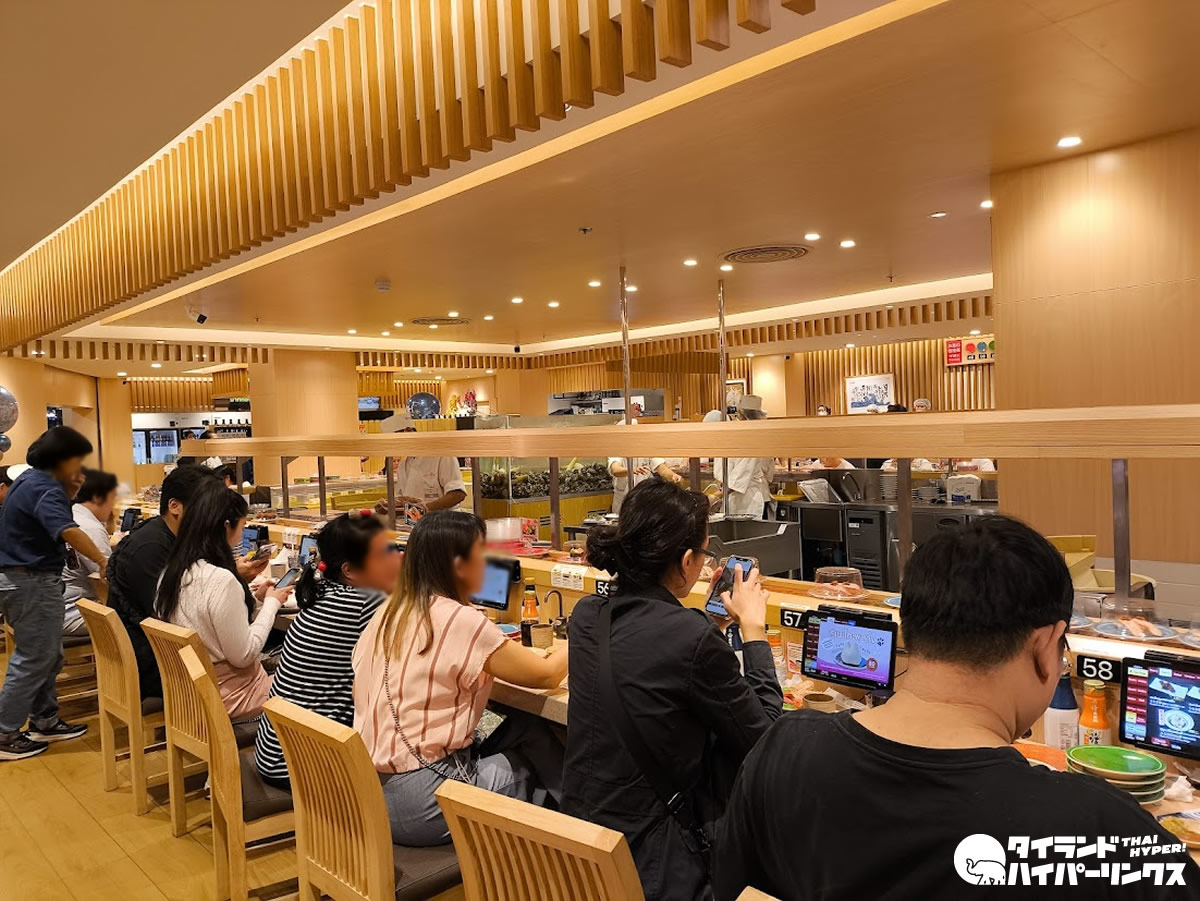 日本の「回し寿司 活」同様に回転レーンが設置され、職人が握るのを目の前で見ることのできるカウンター席や、家族や友人と利用できるテーブル席も充実。日本の店舗同様に、タッチパネルから注文が可能で、日本語にも対応しています。