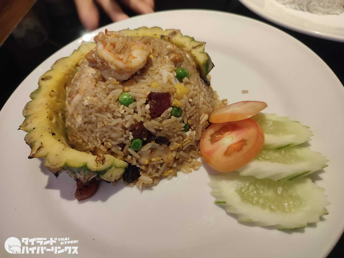 さらに“いかにもタイ!”といった風の「パイナップルチャーハン」(180バーツ)¥。