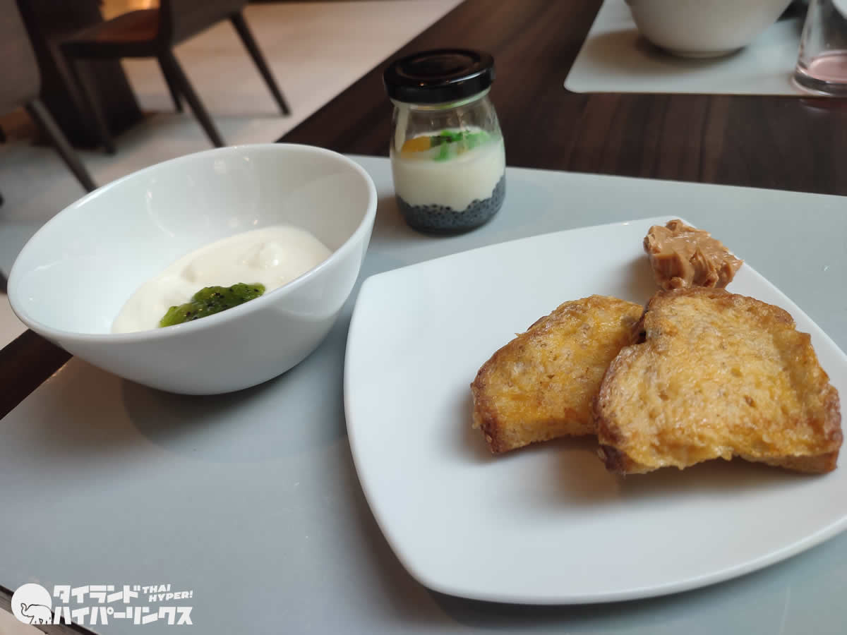 和朝食に満足したのち、締めは甘いもの。フレンチトーストとヨーグルト、そしてパンナコッタをいただきました。
